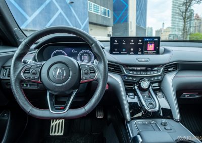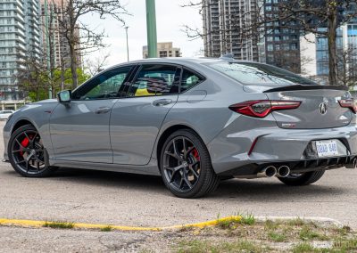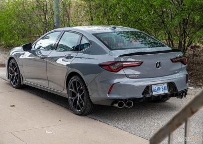 Down the side, some character lines running through the doors keep things visually interesting, but the 20-inch gunmetal wheels steal the show, clearly inspired by the modern NSX. The TLX Type S’ rear end is finished off by quad tailpipes, a small lip spoiler, and an appropriately sporty rear diffusor, but I wasn’t big on the tail lights. Their somewhat bulbous shape doesn’t 100 per cent match the rest of the TLX’s sharp and sleek shape, but aside from that, there aren’t many visual missteps. And judging by the number of compliments I got in my week with the TLX Type S, it certainly appeals to the masses.
