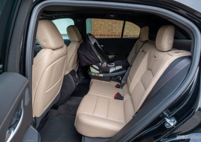 I was a bit disappointed in the 14-speaker AKG audio system, which is a $1,000 add-on. It’s stellar in the big-brother Escalade, and I really wanted to like it here, but it sounds muddy and uninspiring by comparison. Bah humbug. That aside, the rest of the interior is spacious enough for the segment, with plenty of rear-seat space for a child’s seat, and a cargo area large enough to fit a stroller laying flat.