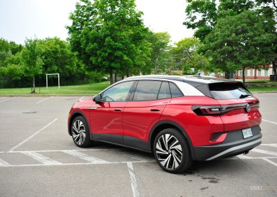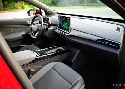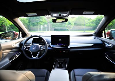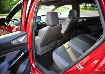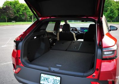 The ID.4’s interior fit-and-finish feels good overall, but I have a few gripes. In the pursuit of interior minimalism, the giant screen in the middle still forces you to menu-jump to access basic functions, such as changing the airflow through the vents. Perhaps younger buyers do not mind constantly interacting with the touchscreen. Plus, the haptic controls throughout the interior are gimmicky, especially for the windows; the touch panel labelled “Rear” that toggles between the front and rear windows remains. I constantly found myself activating the rear windows by accident, making the simple act of operating a power window a slight chore. This may be why the Audi Q4 E-Tron, which shares the same platform and is geared towards an older clientele, retains much more physical switchgear. Finally, similar to my Taos Black Edition tester, the gloss black trim on the main touchpoints is a dust-and-fingerprint magnet. It is a trend that needs to be put to pasture.