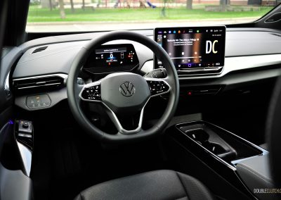 Hustling the ID.4 through on-ramps and winding roads was eye-opening thanks to its suspension setup, with MacPherson struts up front and a multi-link rear end. Despite its 4,826-pound curb weight, it does not fall flat on its face. Think of the ID.4 like a football lineman: it looks heavy, but it’s light on his feet. Even in wet conditions, the tires did not slip once as the AWD system put the power down and shuffled it around. Steering is typical Volkswagen: not a lot of feel, but very quick and responsive to your inputs. It’s what most buyers expect in this segment.