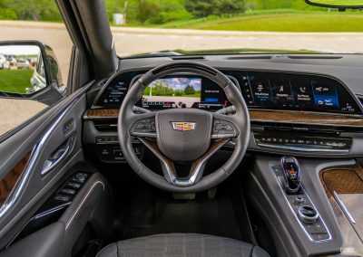 Inside, as a full-size SUV with three rows of comfortable seating, the Esacalade simply works. Once in a while, myself and a few family members hop across the border for some cross-border shopping; normally we’d have to make concessions on how much stuff we can bring back, but that simply wasn’t an issue with the Escalade. It fit everything, and my also-tall family had zero issues sitting behind me in the second row. In fact, with reclining rear seats and the screens back there, it feels like sitting in a first-class pod. If you somehow need more space, you can opt for the Escalade ESV, which adds over 500 more litres of cargo space with the third row up.