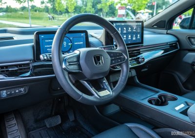 More than the exterior, the interior is extremely well-executed. To a typical Honda owner, you’d be very hard-pressed to notice the GM switchear, buttons, and user interface. Honda’s design team was steadfast in making the Prologue’s interior look and feel like a typical Honda, meaning the controls are in all the right places, the overall dash and centre console design is more Honda than GM, and the physical climate controls look freakishly similar to Honda’s unit, despite being shared with the Blazer EV. The steering wheel is a GM unit as well, but the airbag design looks virtually identical to what you’d find in any other new Honda. I can’t imagine a typical Honda owner being put-off by the interior. Yes, the seats are a bit flat and hard, and the infotainment is similar but not quite the same as other Honda models, but it’s not enough to matter.