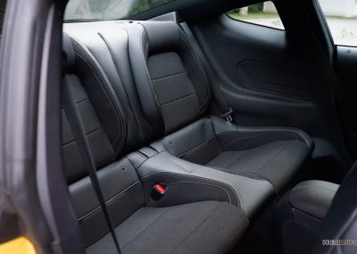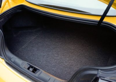 The good news is that the Mustang’s ergonomics are still great. The base seats are relatively comfortable even though they are not the optional Recaros, there is quite a bit of room up front and enough in the rear, and the shifter is well within reach. Visibility from the driver’s seat is good, but I thought the side mirrors were a bit on the narrow side. Trunk volume measures in at 382 litres, which does not sound like much, but the wide opening accommodates a surprising amount of goods.
