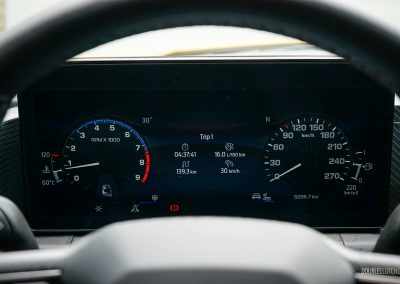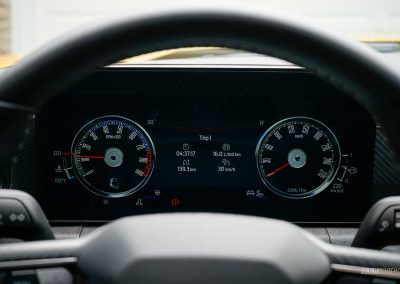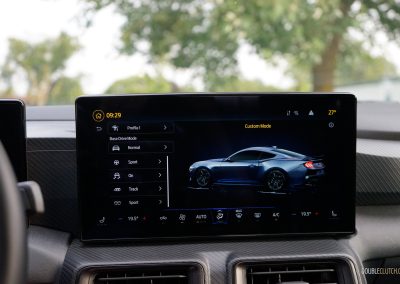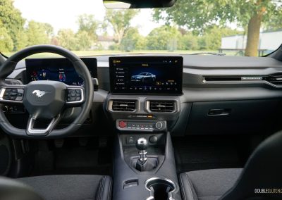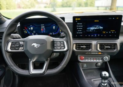 The Mustang sees a complete rework inside as well, introducing more technology into the cabin. Two large, fully customizable displays are featured prominently around the driver. The graphics are vivid, the animations are well-designed and smooth, and we love that Ford has incorporated a couple of classic Mustang instrument cluster layouts — or skins, if you grew up with Winamp. However, Ford seems to have focused almost too much on the screens and tech, and forgot about the rest of the cabin. It looks drab, material quality feels a step down from the previous Mustang, and the classic toggle switches have been replaced with buttons.