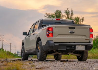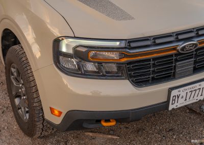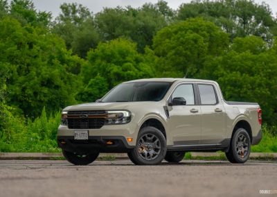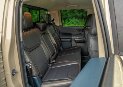 This Maverick is a little different. It’s a loaded Lariat with the Tremor package, trading the hybrid powertrain for a 2.0-litre turbo-four rated at 270 horsepower, mated to an eight-speed automatic transmission and all-wheel-drive. And being the top-trim Lariat, it gets a number of niceties like an eight-way power-adjustable driver’s seat, Bang & Olufsen audio, navigation, adaptive cruise control with lane centering, and dual-zone climate control.