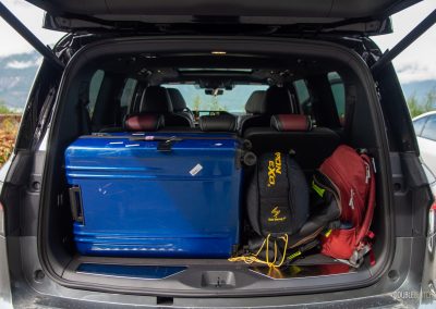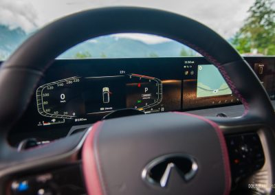 The new boosted V6 is much more potent than the V8, it builds power effortlessly, it gets this big behemoth hustling surprisingly well considering the QX80’s sheer size, and it’s so much better on gas. The 2025 QX80 is rated at 15.5 L/100 kilometres in the city, 12.2 highway, and 13.8 combined. That’s way better than the 2024 QX80, which did 15.1 L/100 km combined. We averaged 12.8 over 300-ish kilometres through the sweepers and elevation changes on the way to Whistler.