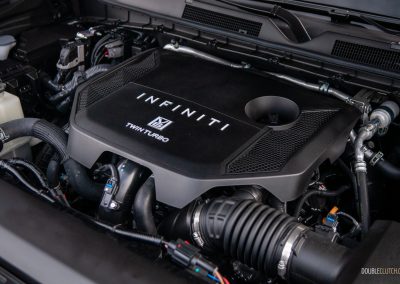 The armada of updates—pun intended—to the newest QX80 start under the hood. The V8 is gone, replaced by Infiniti’s familiar 3.5L twin-turbo V6, putting out 450 horsepower and 516 pound-feet of torque in this application. Look, we’ll never not shed a tear when a normally aspirated V8 bites the dust in favour of something with fewer cylinders and a snail or two bolted to it, but it’s a welcome upgrade here.