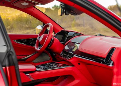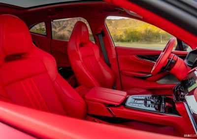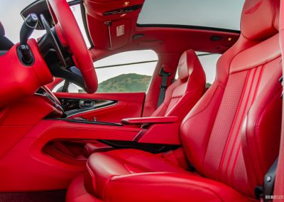 It’s a significant step up from what was here before, with a lot of quality of life improvements, all laid out in a manner that’s much easier to use and prettier, because that matters in a car like this. On the topic of pretty, I have to bring up this DBX 707 tester’s colourway of Supernova Red paint over All Spicy Red leather—it’s stunning. I was apprehensive about the red-on-red at first, and there’s no instance where it doesn’t look a little much. But in practice, on this vehicle with its sense of theatrics and beautiful design, it really works. It should be a little much. It’s nearly half a million dollars. You kind of want it to pop and feel special, like the boutique product that it is.
