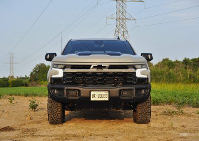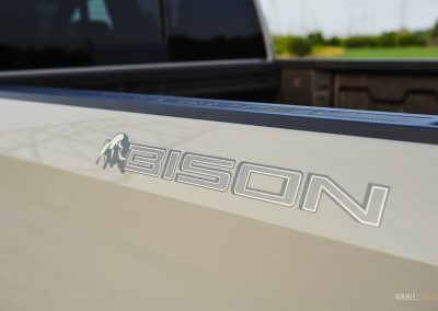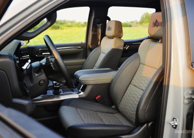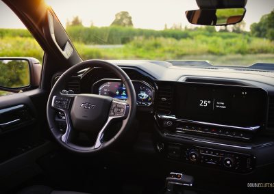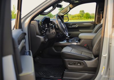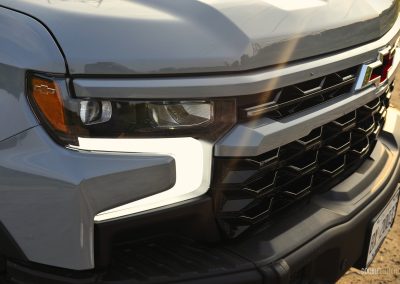 The Silverado ZR2 Bison’s exterior has the presence of a Transformer, with its macho hood bulge, wide stance, metal bumpers, and exposed skid plates ready to tackle anything that gets in its way. I am not a fan of the standard Silverado’s front end and its chrome trim, but the ZR2 Bison’s front fascia looks less busy thanks to the chrome delete, blacked-out front grille, and shorter bumper. An odd omission from GM is not equipping this particular Bison with 35-inch all-terrain tires as seen on the smaller Colorado, though the 33-inch Goodyear Wranglers on our tester still did a good job on providing that off-road look, feel, and capability.