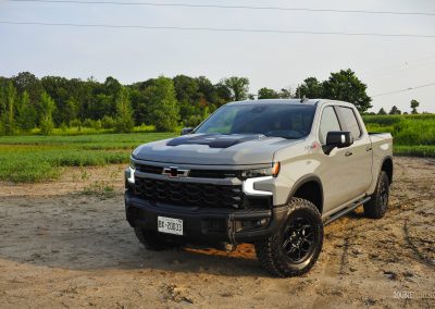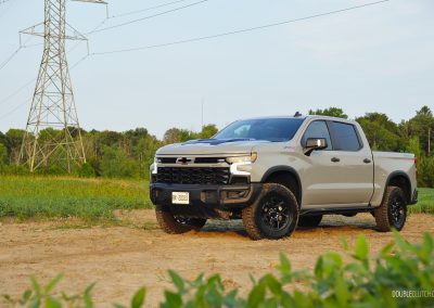 For 2024, the Silverado ZR2 is now offered with two engine choices. An all-new 3.0-litre Duramax inline-six turbodiesel comes standard on the ZR2, whereas the familiar 6.2L V8 gas motor is now a $1,995 option. Our tester is equipped with the latter, making 420 horsepower and 460 pound-feet of torque, which is more than adequate for pulling this behemoth. It is paired to a 10-speed automatic transmission that is well-calibrated, always willing to accelerate within its selected gear rather than constantly downshifting thanks to the sheer torque of this V8. The motor has a nice initial bark on start-up while not being obnoxiously loud; with the optional active exhaust, it wakes up into a growl in Sport mode without creating any additional drone.