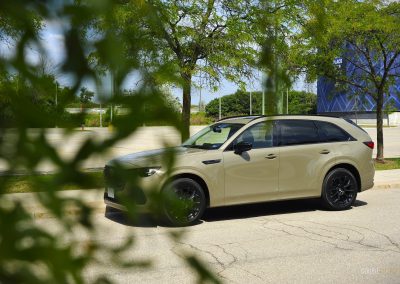 Powertrain options for the CX-70 include mild and plug-in hybrid options. PHEVs use a 2.5-litre inline-four, while mild hybrids use one of two variants of Mazda’s new 3.3L turbocharged inline-six. Our GT tester is equipped with the Standard Output inline-six, making a combined 280 horsepower and 332 pound-feet of torque with a 48-volt mild hybrid system on 87 octane fuel. The High Output version, on the other hand, makes 340 hp and 369 lb-ft of torque, albeit with 91 octane fuel.