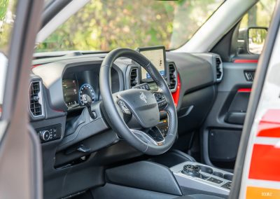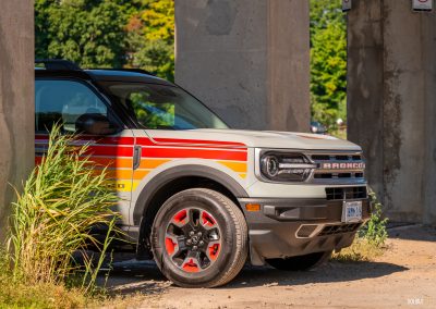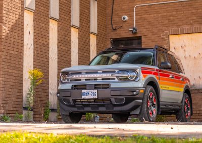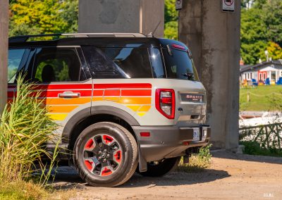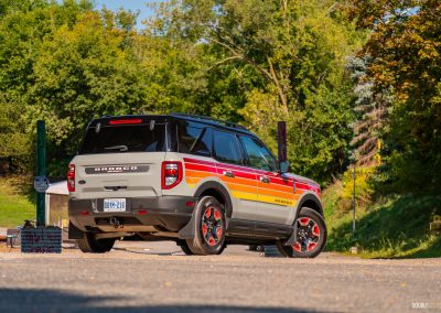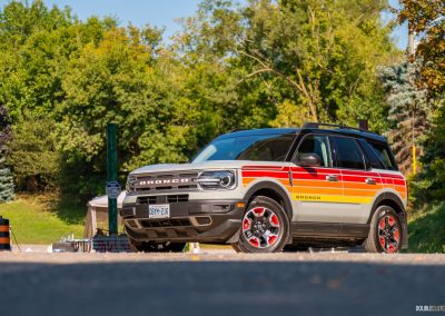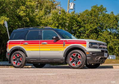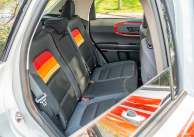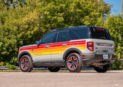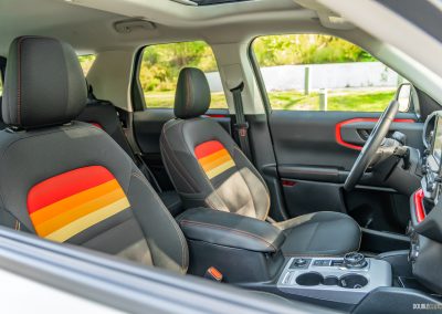 This particular Bronco Sport is the new-for-2024 Free Wheeling trim. It’s inspired by the Free Wheeling package offered on the original Bronco in the late 1970s, and it elicited a wide range of reactions—but most of them weren’t complimentary. It’s all a bit over-the-top, especially the red accents on the wheels, but thankfully Ford offers several other trims that are perhaps a bit more tasteful. Stripes and accents aside, the Bronco Sport is attractive. Its boxy styling is still very much “in” these days, and certainly resembles its big brother.