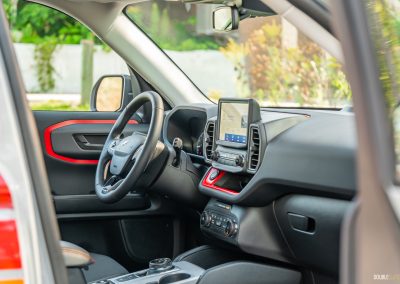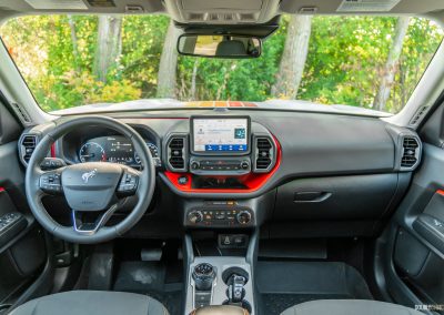 Under the hood, you’ll find a 1.5-litre turbocharged three-cylinder engine shared with the Ford Escape. It puts out 181 horsepower and 190 pound-feet of torque, paired to an eight-speed automatic. and AWD is standard throughout the lineup. Power output is acceptable for driving around town, but it does struggle when you pushit hard, and the note isn’t what I’d call flattering. Ford does offer a more powerful 2.0L turbo-four, but only on the most expensive trim. This engine would be better-suited to the Bronco Sport if you’ll regularly load it up with passengers and their gear. Unfortunately, Ford doesn’t offer any of the Escape’s hybrid or plug-in hybrid powertrains here, either.