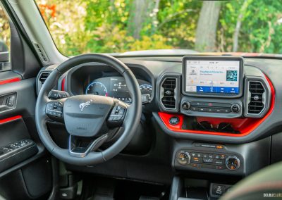 Aside from the lack of straight-line speed, the Bronco Sport is easy enough to live with. There’s a bit of body roll when you take an on-ramp a bit too quickly, and due to its tallish and boxy shape, there’s more wind noise than you’d expect. But other than that, the Bronco Sport filters out potholes and other imperfections well, the eight-speed automatic transmission is well-behaved, and there’s more ground clearance here than most other crossovers.