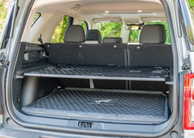Thanks to its upright design, the Bronco Sport has plenty of head room regardless of where you sit, especially if you’re over six-feet tall like me. However, sitting in the back can be challenging depending on how the front seats are set, especially if whoever up front is on the tall side. Still, in terms of overall space and accessibility, what you see is what you get: the doors open wide, and cargo space measures an impressive 920 litres with the rear seats up, and 1,846 L when folded. Our tester’s optional cargo management system allows for two levels of storage, and also doubles as a usable table. Very cool.