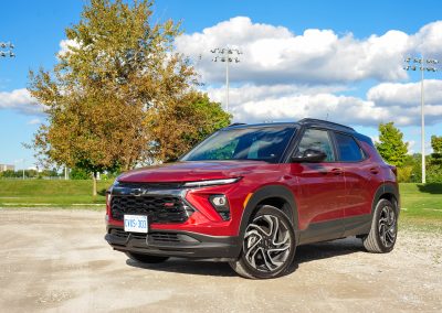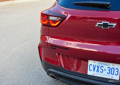 The Trailblazer RS’ light steering is somewhat communicative, but overly sensitive to small inputs. We suggest keeping your Tim Horton’s coffee secure and refrain from having any handheld items while the vehicle is in motion, unless you need to throw banana peels out the window to prevent frantic drivers in your rear view from overtaking you. With your edibles secure, the Trailblazer does an adequate job at being a city dweller with a good turning radius in tight streets and tricky parking lots, even with the 19-inch wheels on our tester. However, the rear suspension easily bottoms out over big bumps and overall ride quality is sacrificed with this tire setup. We suggest going with a lower-spec trim with smaller wheels, if you are really dead-set on a Trailblazer.