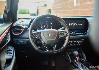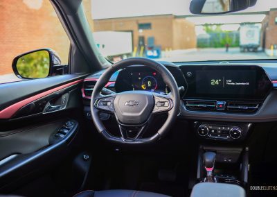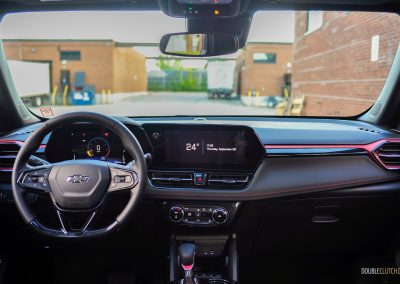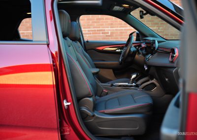 Powering this Really Spicy Trailblazer RS is a 1.3-litre turbocharged inline-three, squeezing out 155 horsepower and 174 pound-feet of torque. Transmitting all those horses to all four wheels is a nine-speed automatic transmission. It’s a night-and-day difference compared to lesser-equipped Trailblazers, which make do with a 1.2L three-cylinder, a CVT, and are front-drive-only. Having sampled this base powertrain in the Trax and Envista ST, we can assuredly say this tester’s powertrain should be the sole option. Despite it being an upgrade, expect a 9.5-second zero-to-100 km/h reality check for when getting onto the highway is your last resort.