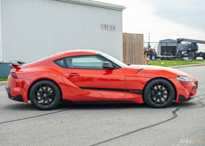 This particular example is a 45th Anniversary Edition model, one of only 45 produced exclusively for Canada. It’s finished in a fetching shade of orange, accented by a handful of contrasting accents such as matte black wheels, a gloss black side decal and calipers, and a raised decklid spoiler also finished in black. In essence, it’s not that different from the standard Supra, but if you like the cosmetic upgrades, being one-of-45 puts you in some exclusive company.