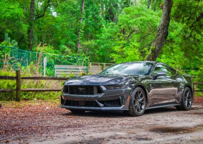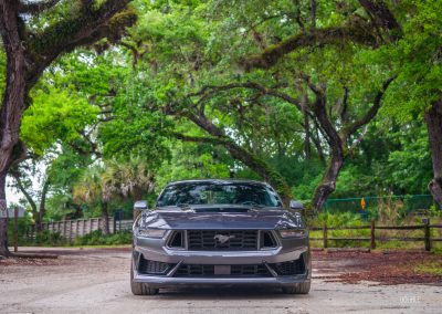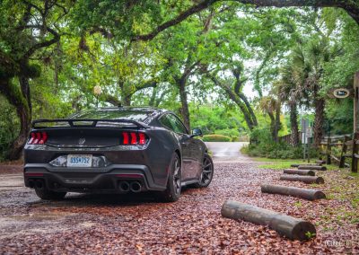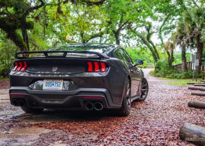 And that’s what you can see. Underneath all that, the Dark Horse is powered by Ford’s venerable 5.0-litre “Coyote” normally aspirated V8. It produces a meaty 500 horsepower and 418 pound-feet of torque on its own. No forced-induction or mild hybrid assist here; it’s all cubes under the Mustang’s hood. Among the Dark Horse enhancements are forged connecting rods, stronger cams, and software tweaks. It sings its thunderous bellow of fury through the standard active exhaust, with settings ranging from I’m-a-good-neighbour quiet to oh-my-God loud.