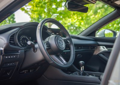 Similarly, the Mazda3’s chassis is a treat. Both handle themselves very well and somewhat similarly, but despite the Mazda3 feeling maybe a tiny bit more relaxed, it’s fun to flick around. It just feels right. Just like how Mazda nailed the throttle/clutch/shifter interface, the chassis is sweet, playful, and feels natural. There’s a clear through-line connecting the Mazda3 to the MX-5 Miata.