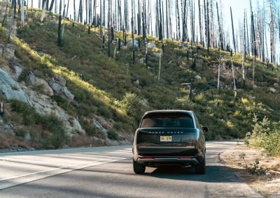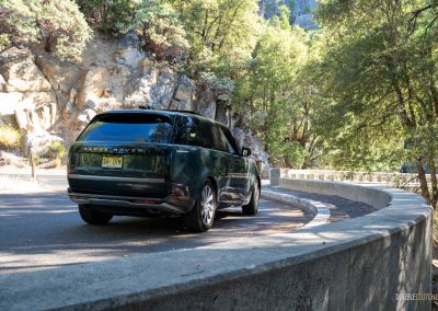 The landscape shifts dramatically, descending into Yosemite Valley. Thick forests give way to open vistas, and the charred trees from previous fires stood like eerie sentinels against the backdrop of towering mountains. The Range Rover kept taking the elevation changes and switchbacks with ease; at this point, I felt like I’d mastered all the heft of the chassis. The turbocharged inline-six and its 395 horses were trotting along smoothly, pulling us up the steep passes without much fuss. The brakes kept us well within check for the descents, offering plenty of stopping power.