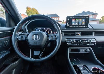 The Black Edition treatment continues inside as well. Red-accented perforated leather seats with ‘Black Edition’ embossed in them, along with contrast red stitching on the steering wheel, seats, and door panels, and red ambient lighting are exclusive to the Black Edition. [Shouldn’t it be called the Red Edition, then? —Ed.] The rest of the interior is typical Honda, with a simple digital gauge cluster and nine-inch touchscreen for the infotainment shared across the lineup. Honda ensures there are physical controls for your most commonly used functions, so the Pilot gets bonus usability points for that.