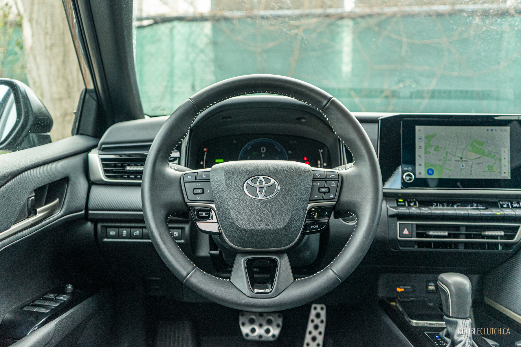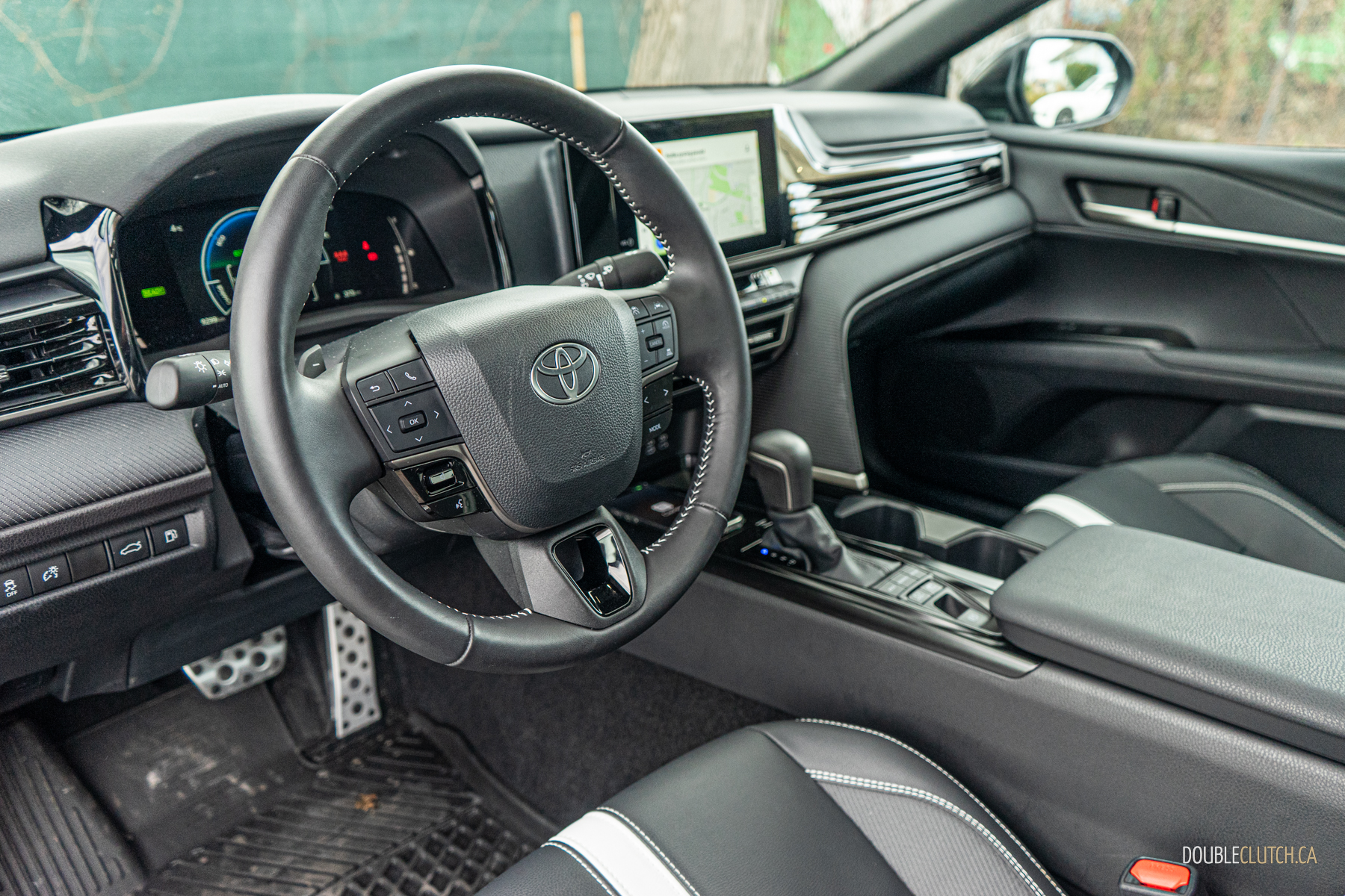 Inside, fit and finish is mostly good, but the Camry’s material quality leans a lot more plasticky than we’d like. Compared to the Accord, the Camry feels a bit cheap, with rougher-feeling surfaces and a generally less-substantial overall feel. The piano black bezel that surrounds the main infotainment screen is fine, but the piece around the shifter should really be something that won’t show every single fingerprint, scratch, and speck of dust. Our tester only showed 9,000 kilometres on the clock, but the trim piece already looked worn. This is very much at odds with one of the Camry’s biggest draws: the ability to age well and still look new after many, many years.