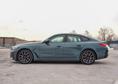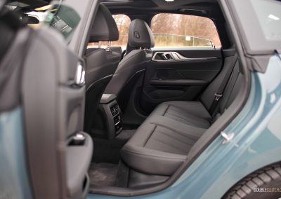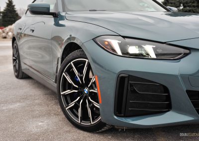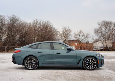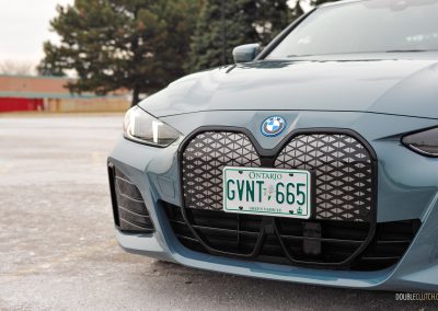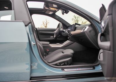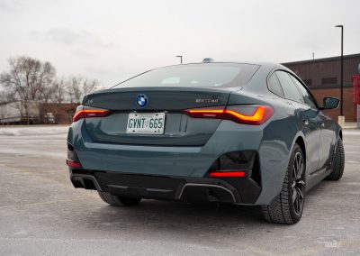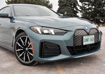 Admittedly, I was not a fan of BMW’s new kidney grille—or buck teeth as some people call it—though I quickly got over it by seeing how nicely proportioned and handsome the i4 really is, especially finished in our tester’s Cape York Green colour. To my surprise, not a single onlooker commented about the grille, but instead complemented the colour, followed by a remark along the lines of, “I didn’t know it was electric until you told me.” Considering this is a coupe first and foremost, the frameless doors are a nice touch.