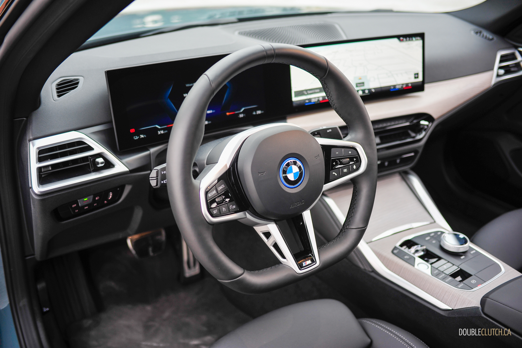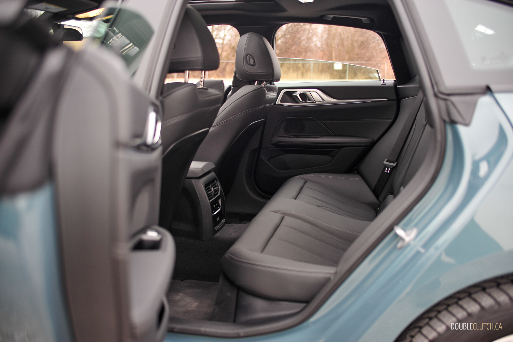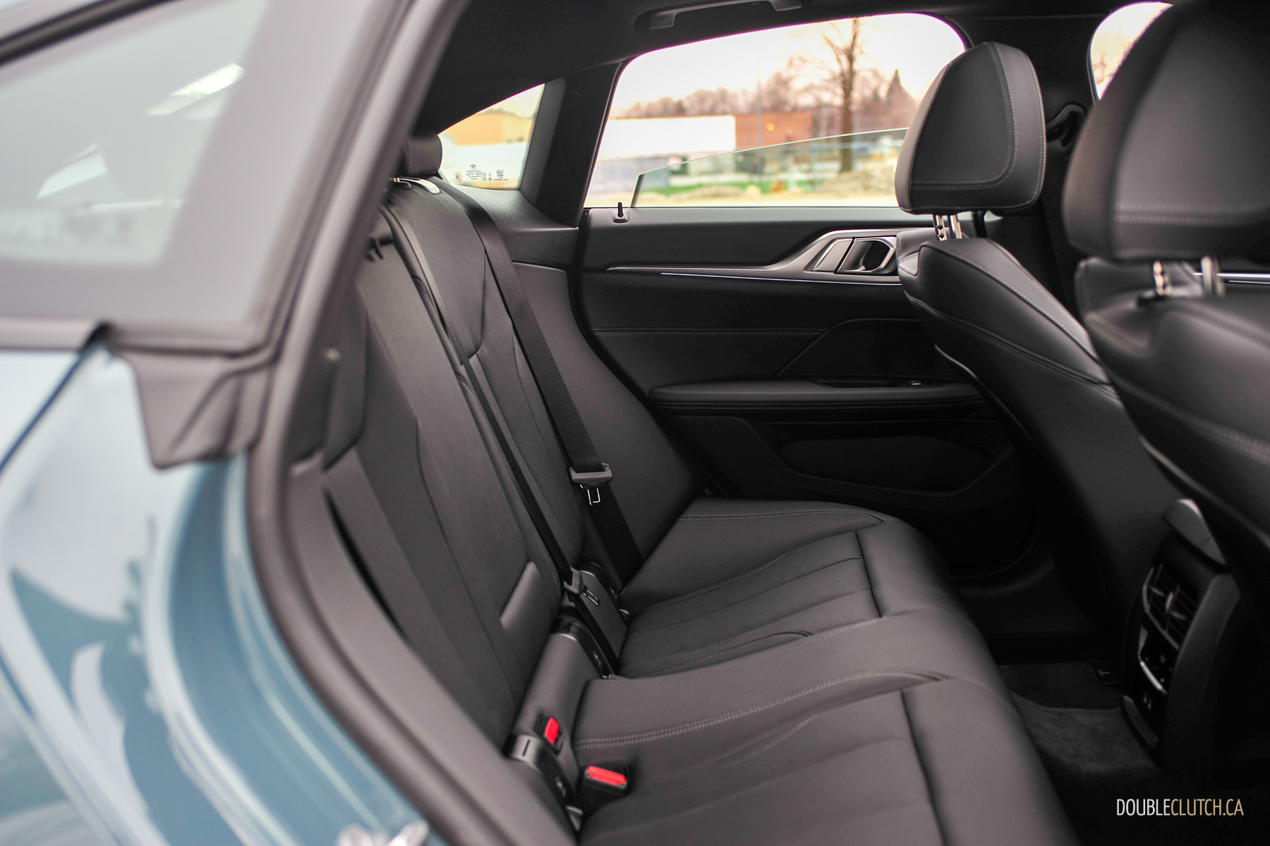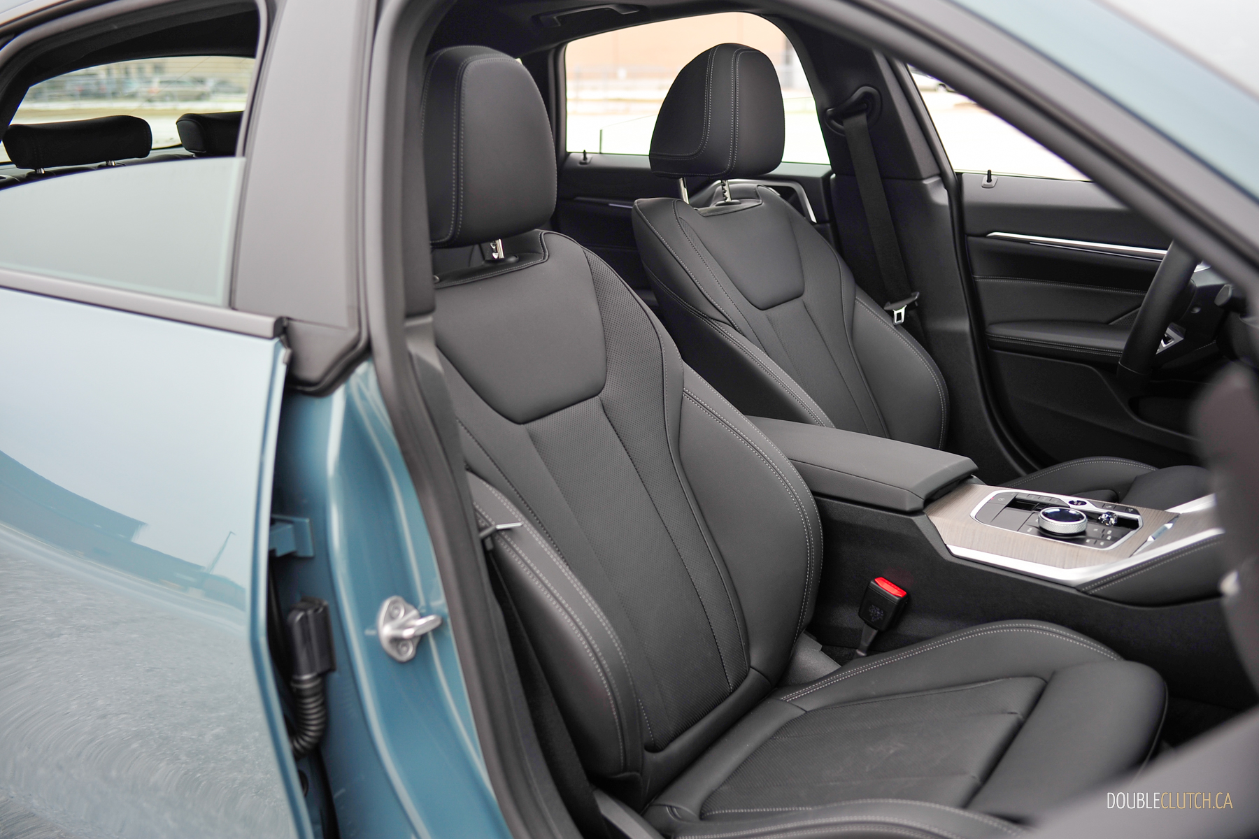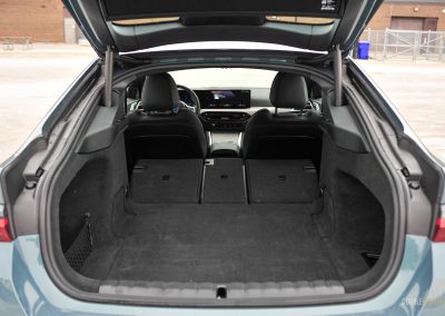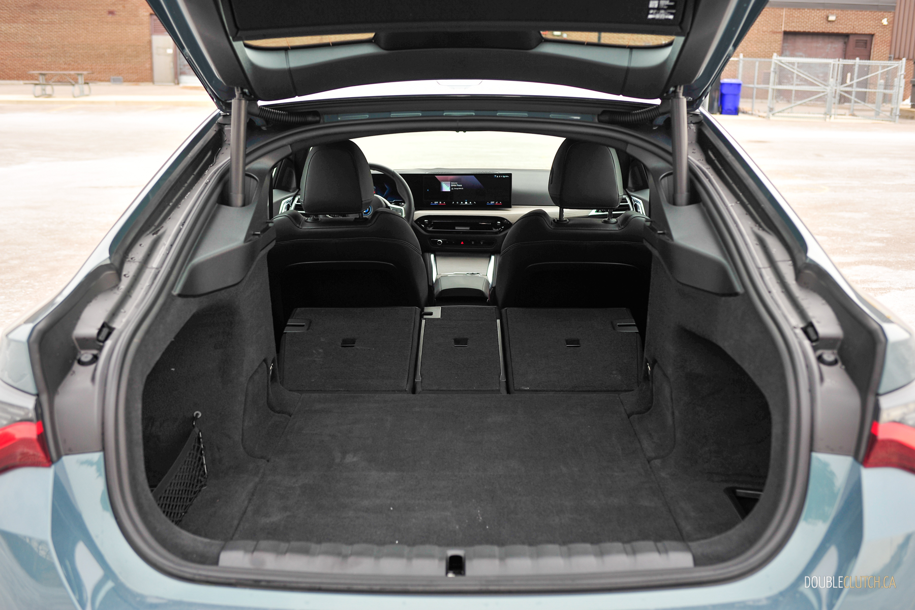If you have spent any time inside a newer 3 or 4 Series, the i4 looks and feels immediately familiar. Build quality is excellent, with little to no squeaks and rattles along with quality materials throughout the cabin. Our tester’s open-pore wood trim has a nice matte finish, minimizing glare while adding some contrast to the black interior. Despite the sloping profile, visibility is quite good and there’s a decent amount of space for the front occupants. If you’re over six feet tall, you’ll feel pinched in the back with headroom due to the sloping profile, but it is far from a penalty box considering heated rear seats come equipped. In terms of cargo capacity, the i4’s trunk can swallow 470 litres, or 1,290 L total with the seats folded down. The liftback opening makes loading and unloading a breeze, though a “frunk” would have been nice to carry a few more items.