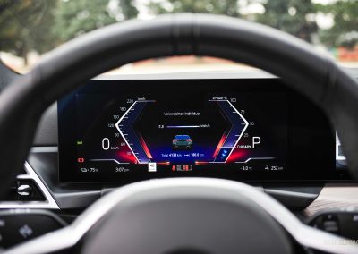 The familiarity continues with the i4’s tech. As with many new BMW models, the digital gauge cluster and infotainment screen live under one glass panel for an integrated and minimalist aesthetic. Though a lot of us miss the old look with the separate gauge cluster, the new iDrive 8.5 infotainment is very easy to use and among the best industry-wide. The layout is very easy to understand and you can use the touchscreen or the rotary knob on the centre console. A lot of the physical switchgear has unfortunately been deleted, thankfully the climate control stays on-screen all the time.