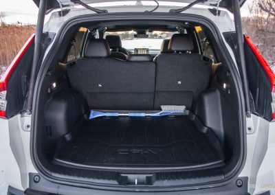 The RAV4’s back seat and cargo area is generous. At six feet tall, I can comfortably sit behind myself and the rear bench is fairly supportive. But in addition to the more comfortable seats, the CR-V has three more inches of legroom in the back—and a lot more cargo space. At 1,065 litres with the seats up and 1,977 when folded, the RAV4 is hardly cramped, but the CR-V counters with 1,113 L seats-up, growing to a whopping 2,166 seats-down. On top of that, the CR-V has a flatter cargo floor with the seats down and a lower lift-over. Honda’s ability to make the most of a given space has always been witchcraft; consider this another clear-cut win for the CR-V.
