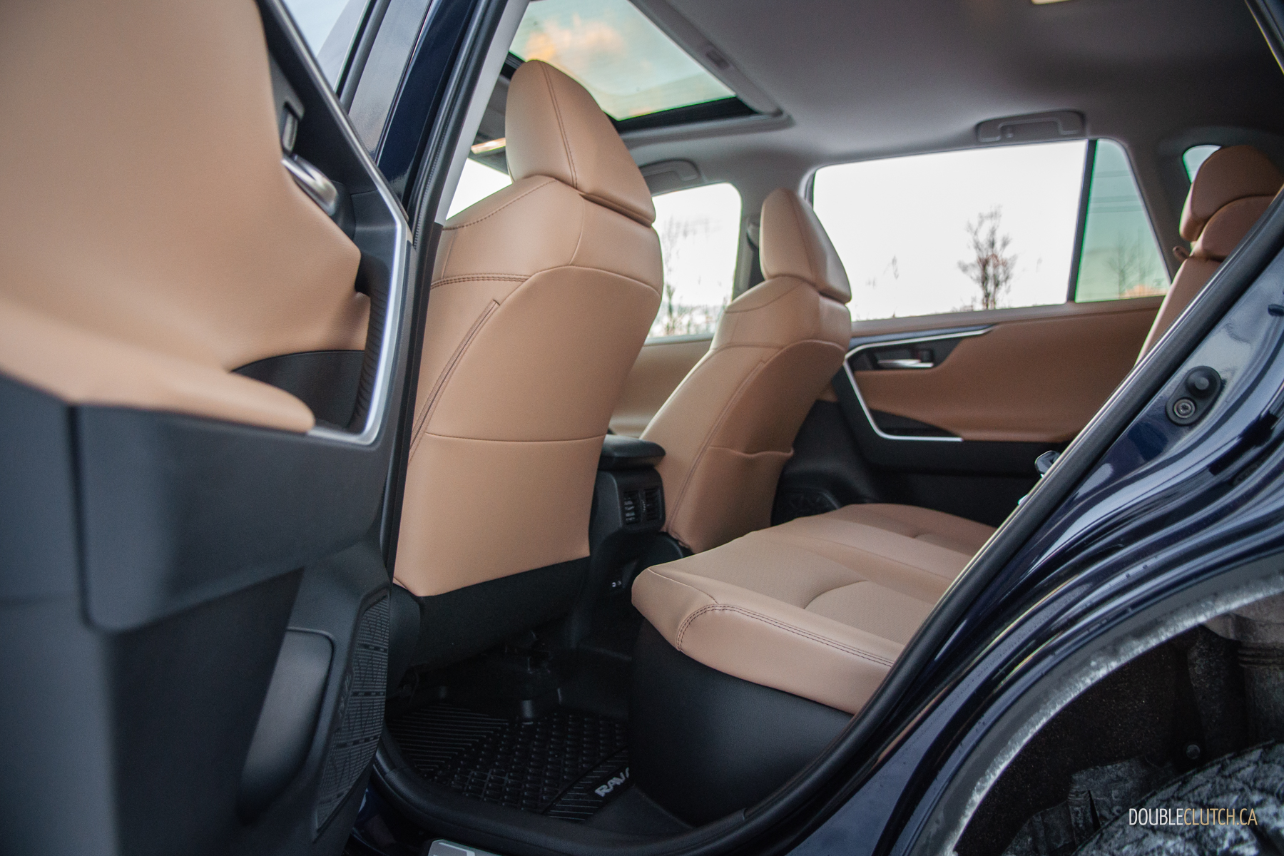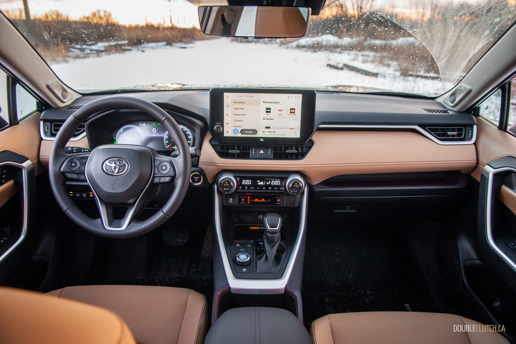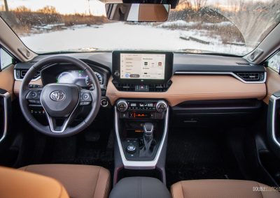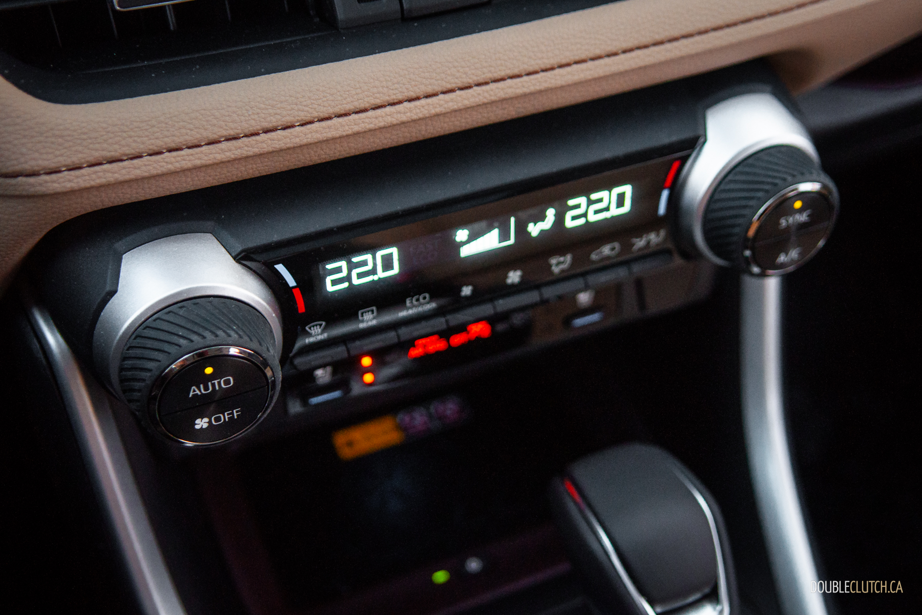 Both the RAV4 and CR-V are quite similar in many ways. They’re both very roomy, offer a good amount of storage, and have -quality materials and ergonomics throughout. We really appreciate that Toyota offers a choice of interior colours on our fully loaded Limited tester; the optional two-tone beige-and-black leatherette interior really brightens up the RAV4’s cabin space. Beyond that, it’s a Toyota: everything is very easy to figure out, and we appreciate the heated seat and steering wheel controls don’t reset—meaning you can turn on the warmers once in October, and turn them off once in April. The large, mitten-friendly knobs for the volume and temperature controls are a nice plus.
