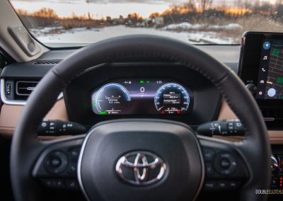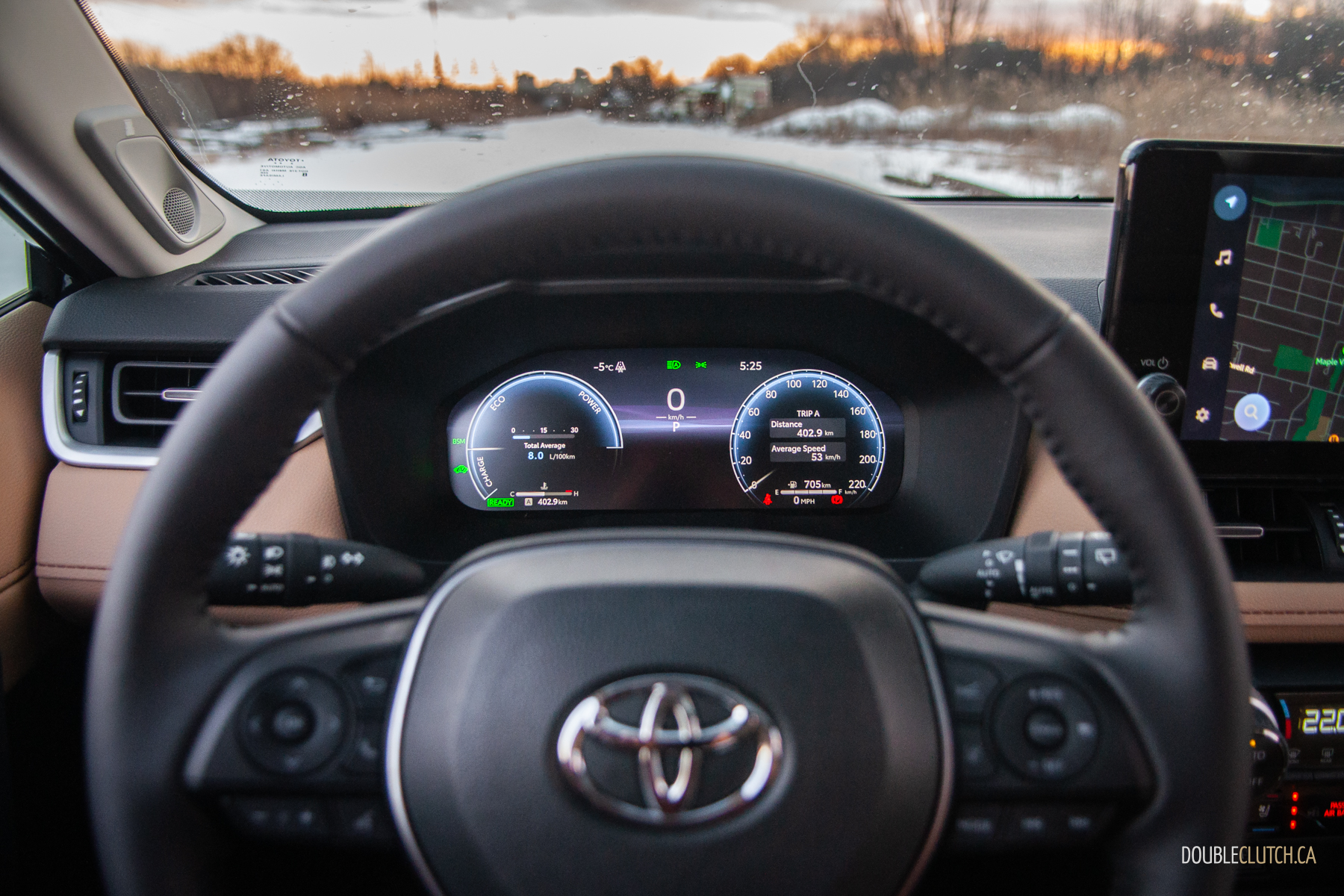 On the other hand, the RAV4 Hybrid is a lot louder with the gas engine pitching in, sounding coarse and unpleasant under any sort of acceleration. If you were deaf, it wouldn’t be much of an issue, but even then, it sometimes gives off a slight shudder when kicking on and vibrates more at idle. It’s not egregious by any stretch, but the sense of refinement associated with this engine has been a long-running knock against Toyota made worse by its competitors having solved it. To Toyota’s credit, the RAV4 does feel a little more punchy at full tilt, and it’s rated to have slightly better fuel consumption. But the Honda feels a little more zippy under normal conditions, and the real-world fuel economy ended up being a dead heat between the two, with both averaging 8.4 L/100 kilometres during a cold snap.
