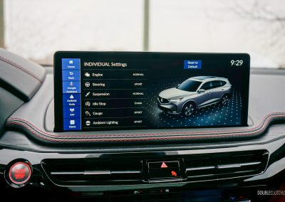 Fuel economy is rated at 13.8 L/100 km in the city, 11.2 on the highway, and 12.4 combined. Our city-heavy commute returned an average of 14.2 L/100 km which is on the high side, but justifiable given our test took place in the dead of winter. While the MDX Type S Ultra can accept regular-grade gas for its 70-litre tank, you will need to pump in premium to get the most performance.