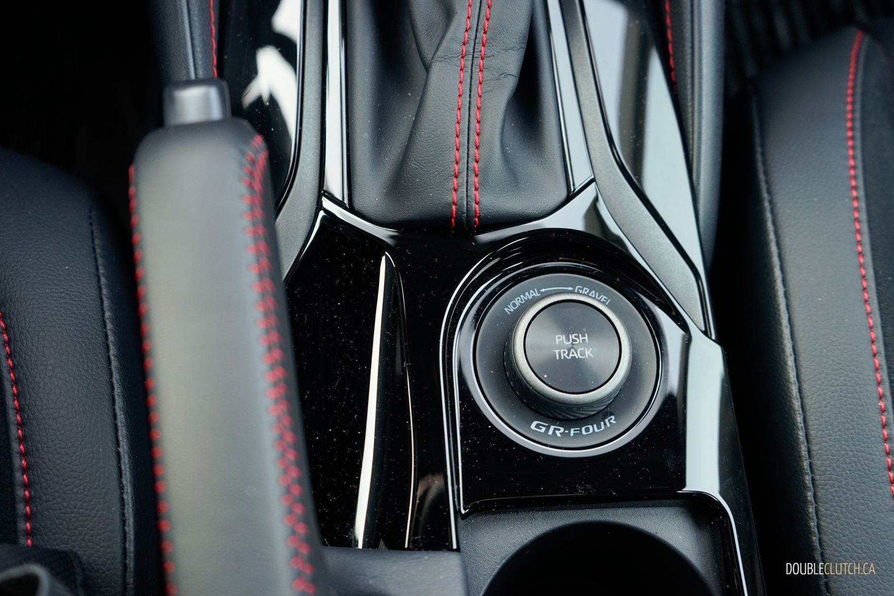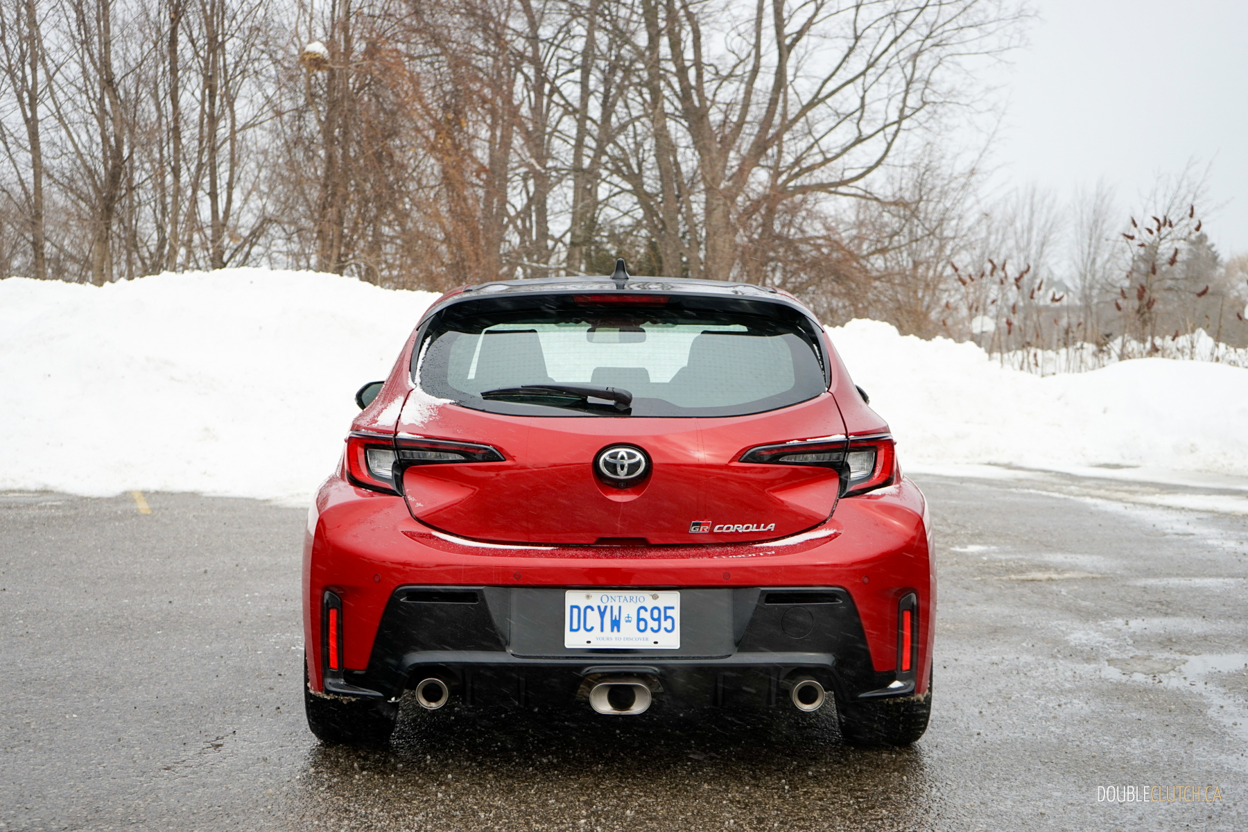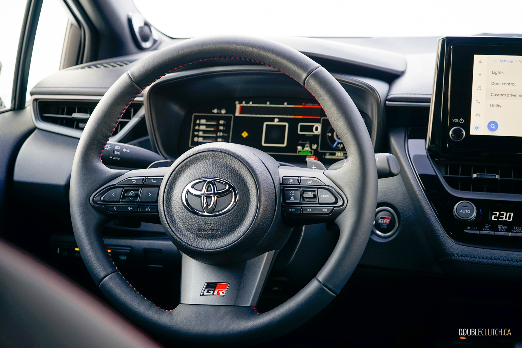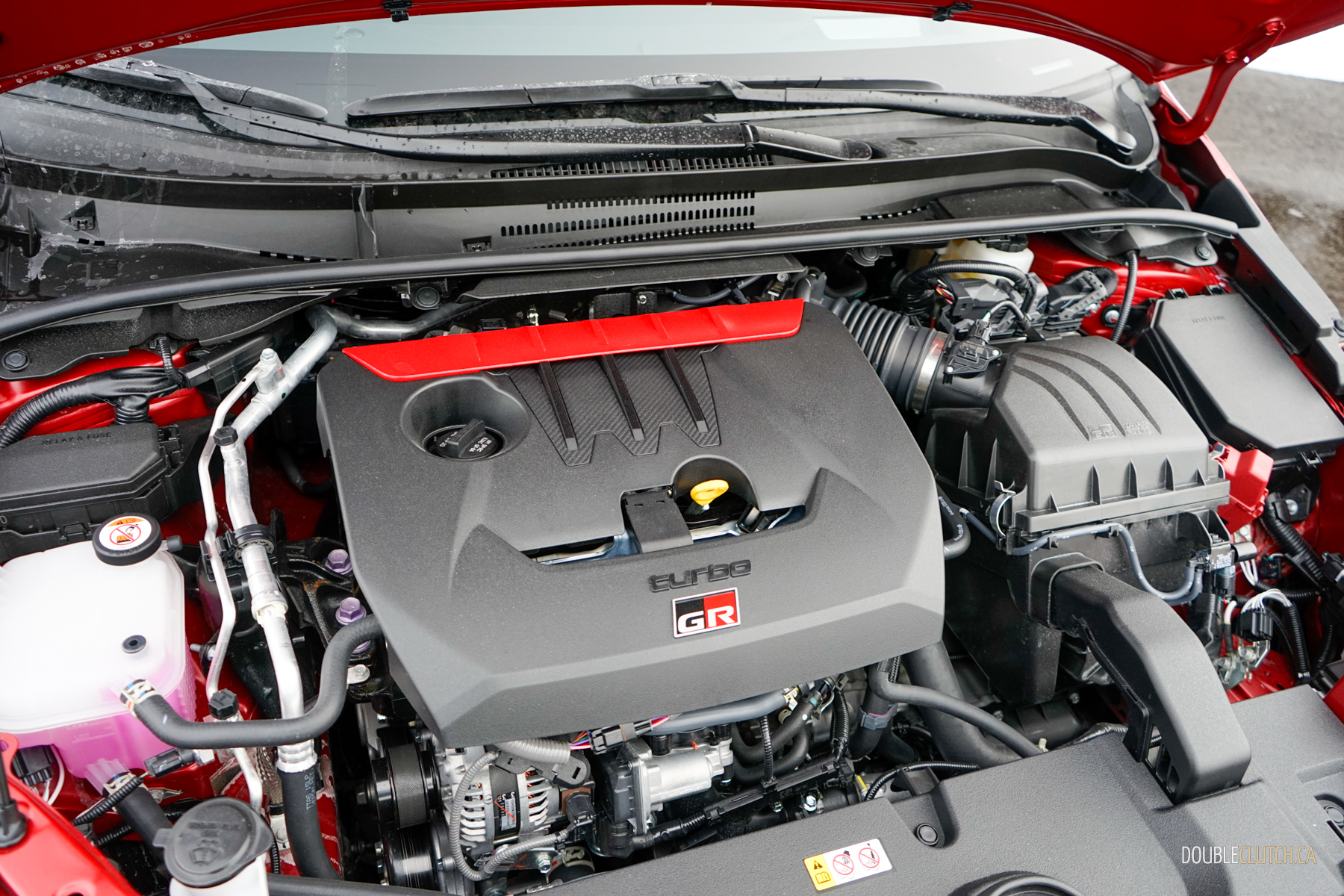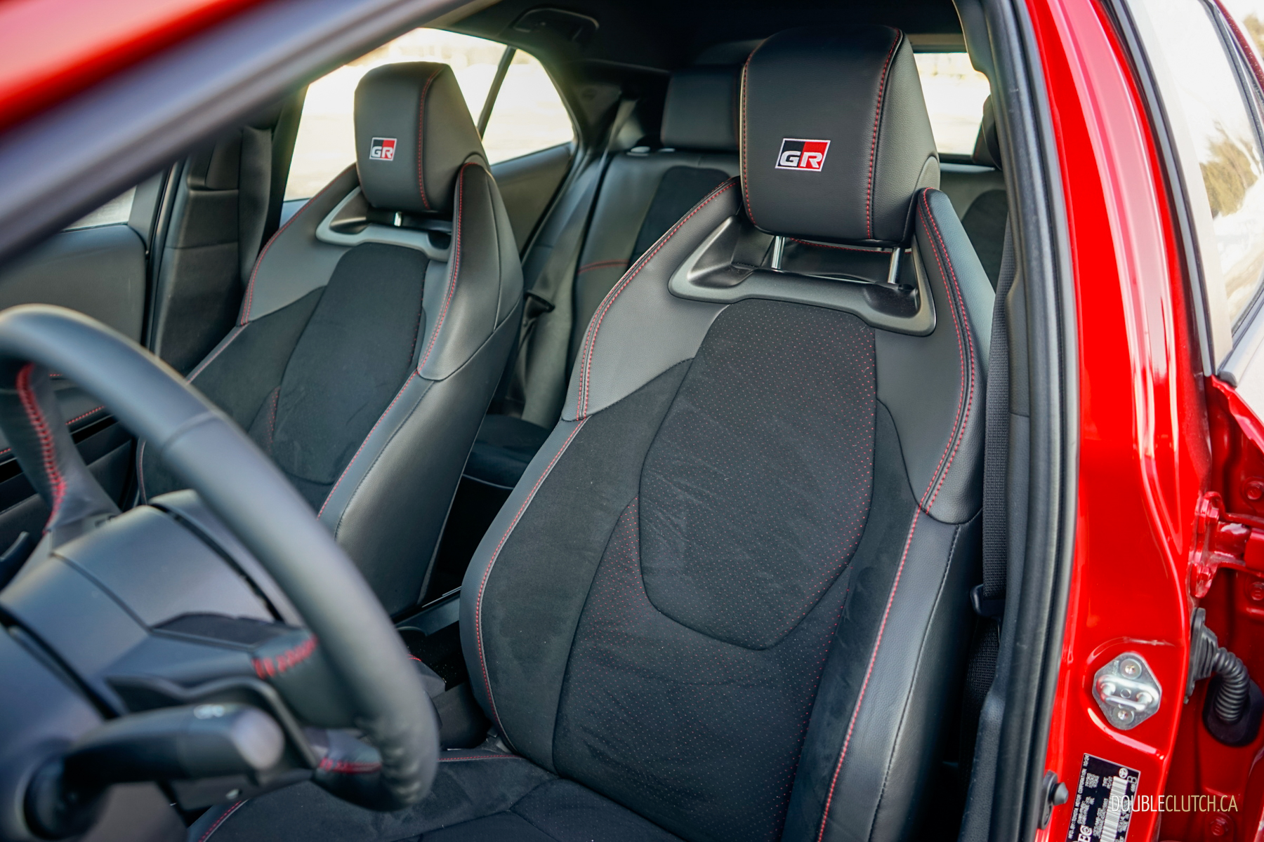 Moving inside, this is where you’ll find the biggest flaw of the GR Corolla. Its interior appointments are below-grade compared to the competition. The eight-inch touchscreen is much smaller than today’s industry standards, there are a lot of hard-touch panels and surfaces throughout, and the overall layout is not much different than a base Corolla. The good news is that usability is excellent, with an easy-to-use infotainment interface and well-placed shortcut keys in easy-to-reach locations. The GR Corolla-specific bucket seats provide a firm hold, and we also liked that the GR Corolla can fit three in the back, albeit not very comfortably. It’s an improvement over the Civic Type R and Integra Type S, which don’t have a middle seat even though there’s enough room for one. Cargo volume checks in at 503 litres—a whopping 157 less than the standard Corolla hatch, which was already tight enough. This is because the cargo floor sits higher, on account of the battery being relocated to the back.