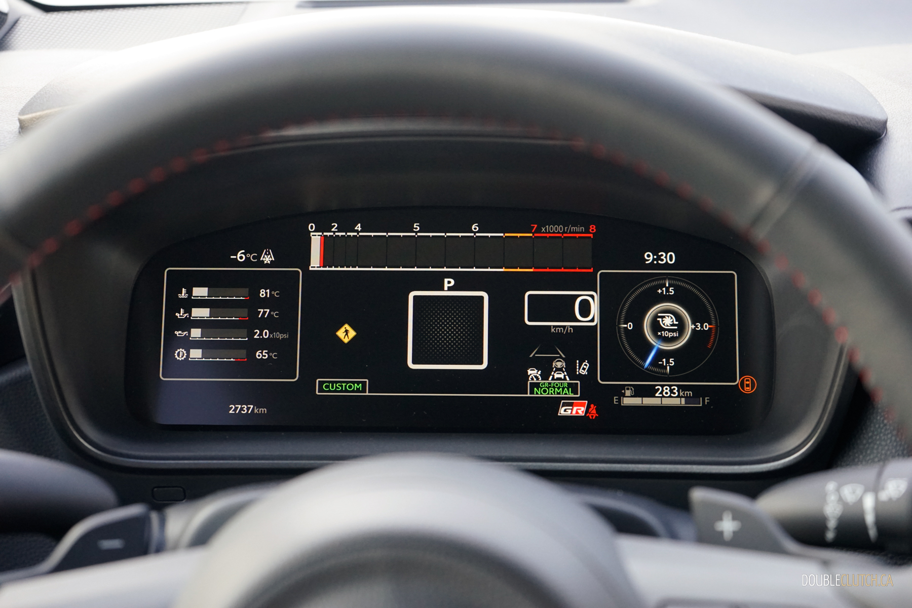 The GR Corolla’s 1.6-litre turbocharged three-cylinder engine also receives a small tweak for 2025. Power output remains at 300 horsepower, but Toyota bumped peak torque to 295 pound-feet, up from 273 in previous years. All this continues to give the Japanese hot hatch an intoxicating driving experience once the throttle meets the floor. The GR-Four all-wheel drive system is quick to find traction, helping launch the GR Corolla with a level of ferocity that gives us a big smile over and kept it there, over and over again. The small engine did have some unwanted turbo lag especially during stop-and go-traffic, but it doesn’t require too big of a stretch of road ahead to have us start smiling again. We averaged 9.3 L/100 kilometres over our week with the automatic GR Corolla—slightly better than what we originally expected, given Toyota’s official rating of 10.5 combined. Premium fuel is required to fill its 50-litre tank.