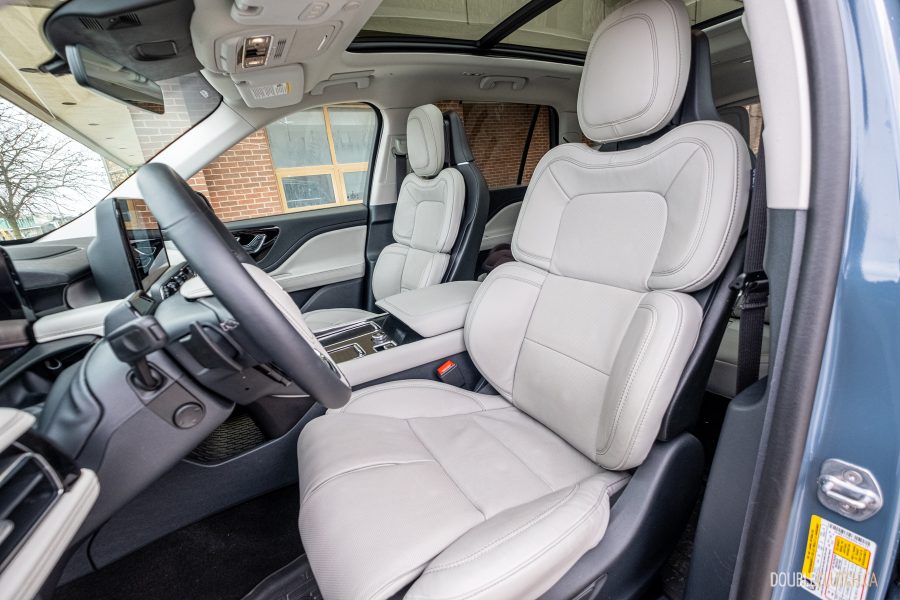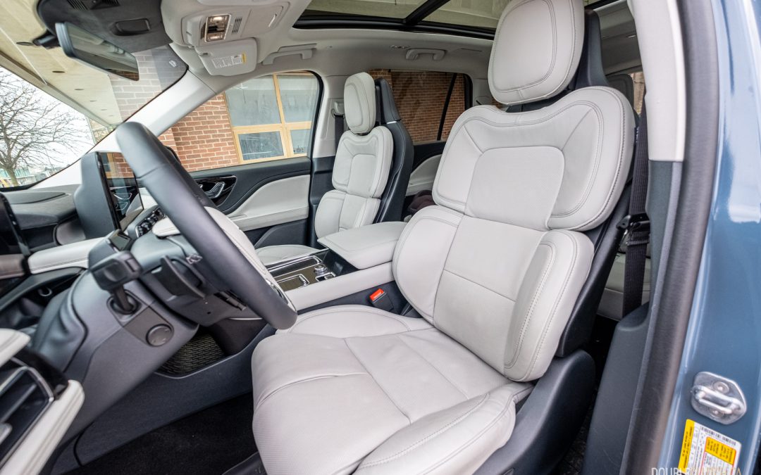 Interior view of the Perfect Position front seats in the 2025 Lincoln Aviator Reserve