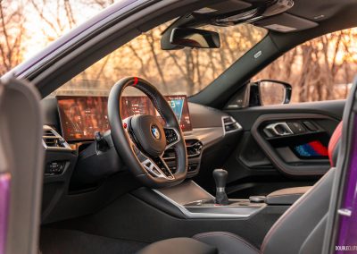 Yeah, it clicked. This car is brilliant. I don’t know how I didn’t see it before, but I can’t unsee it now. There’s been a few tweaks to make it an even better car for 2025: 20 additional ponies, 40 additional foot-pounds of torque on the automatic cars, a newer version of iDrive, the same flat bottom steering wheel we’ve seen in other M cars, and a slew of new colour options, including the spectacular Twilight Purple pearl on this test car.