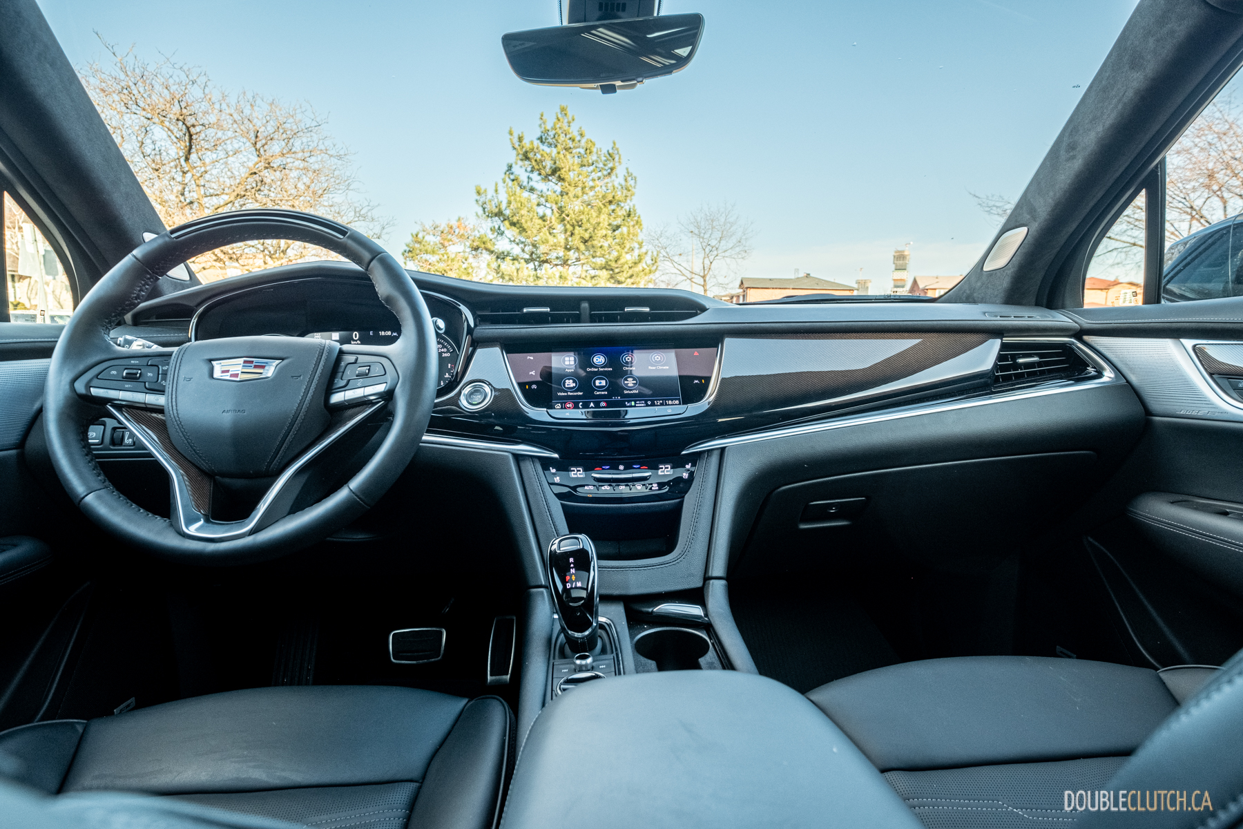 The XT6’s strongest suit is its appearance, especially dressed in black. Its boxy silhouette and sharp lines translate well in a sea of gelatinous blobs. The sheet metal is tight and purposeful, sharing a strong family resemblance to other Cadillac models, especially with the mesh front grille, slim headlights, and vertical LED daytime running lights matching the tail lights out back. The wheel options are tasteful; our tester’s optional 21-inch wheels fill the fenders nicely. As is par for the course, Cadillac sprinkles some chrome touches throughout, coming across as tasteful and premium. I also dig Cadillac’s monochromatic emblem treatment, which was reserved for the fenders on our tester but can be optioned throughout. It’s tasteful but restrained; classic but unadventurous.