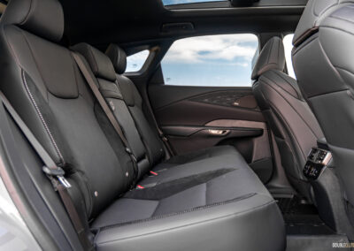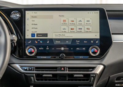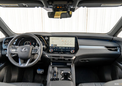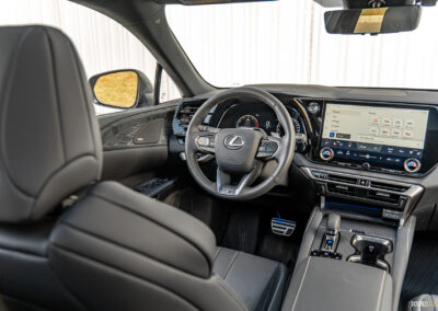Since the RX is a Lexus after all, expect high-quality materials and rock-solid build quality throughout. Unlike some newer Mercedes-Benz models, you won’t find any squeaks or rattles; the leather seats are extremely comfortable, but the bolstering might be too tight for some people; and Lexus uses suede-like accents on the dash and doors to great effect.The 14-inch touchscreen for the infotainment system looks great and works well; although the climate controls are on-screen, at least they’re accessible all the time, and Lexus still includes physical knobs for temperature adjustments. Our top-of-the-line tester also had the impressive 21-speaker Mark Levinson sound system, as well as a digital rear-view mirror.