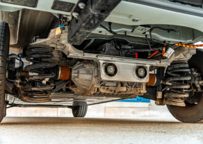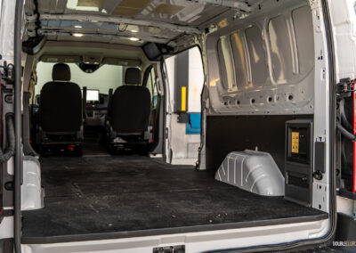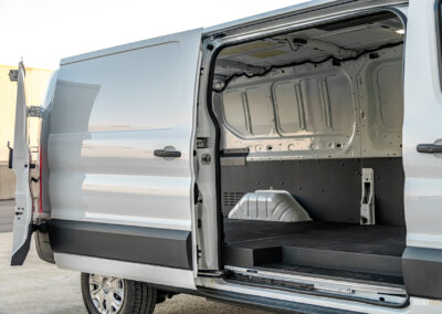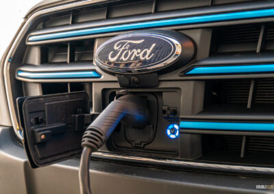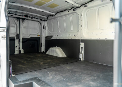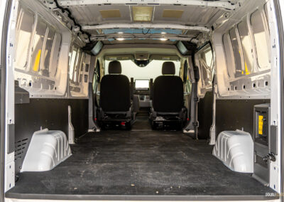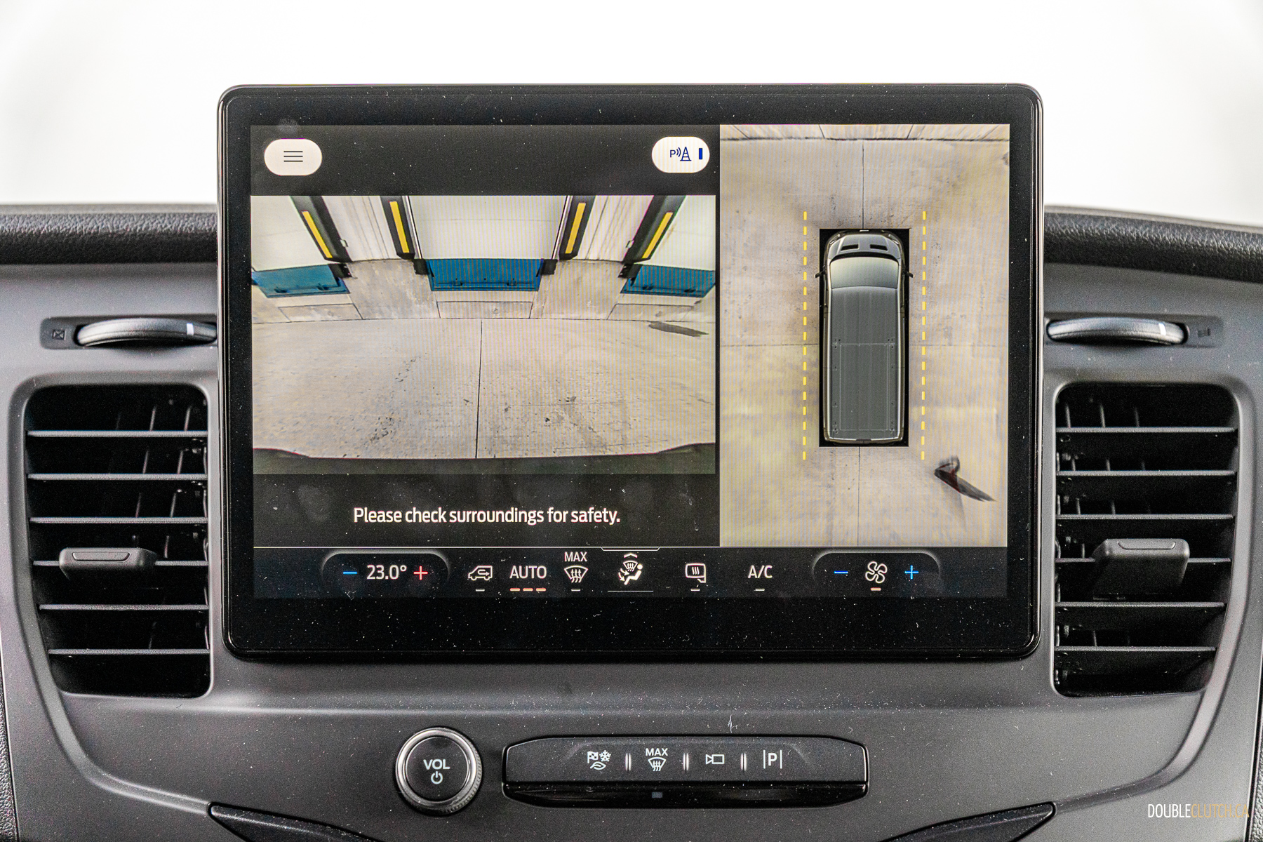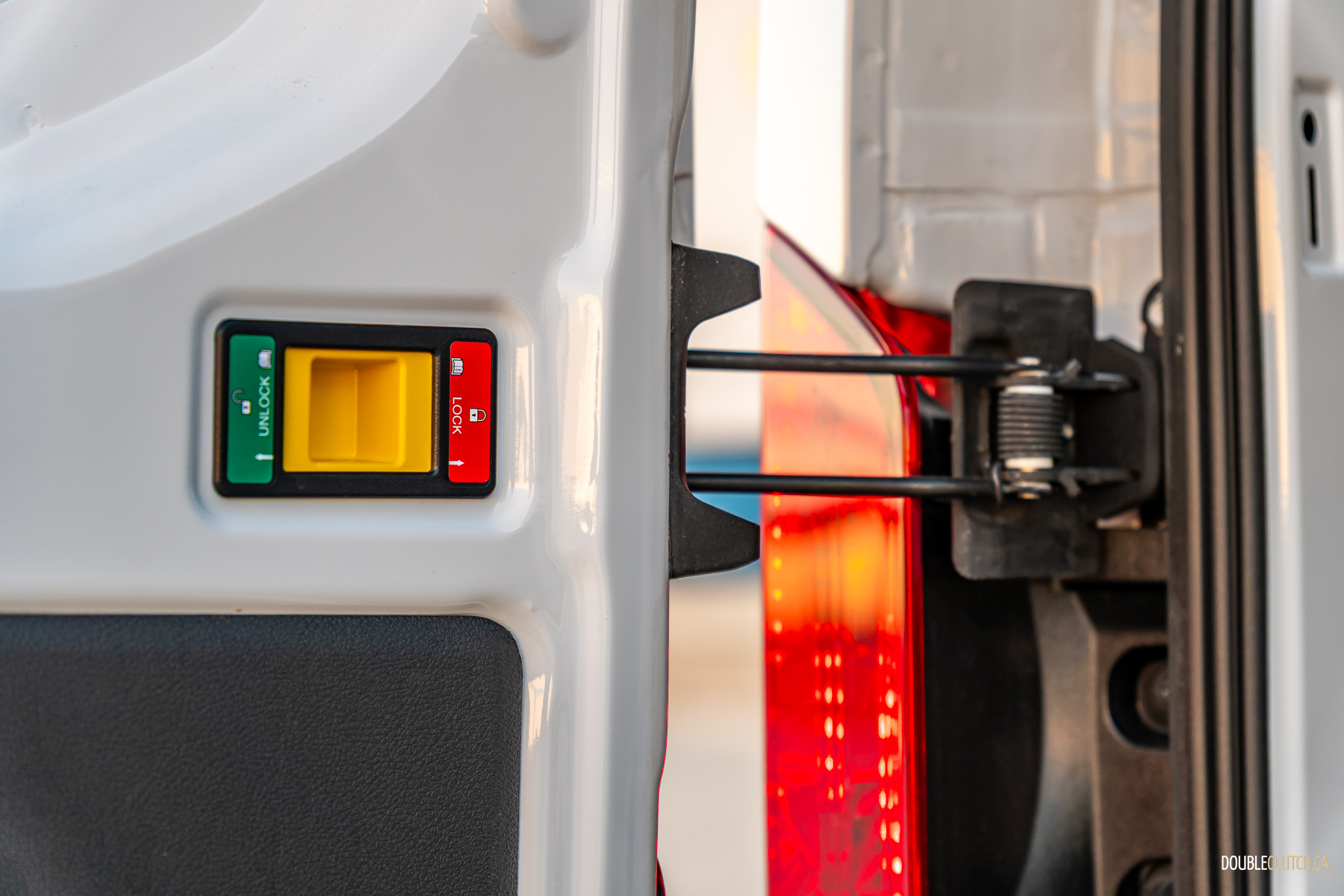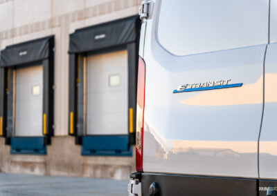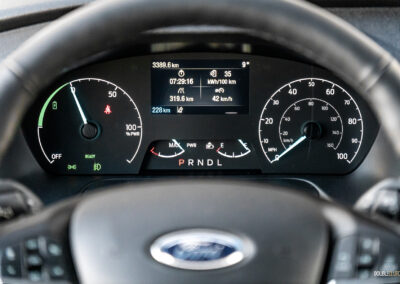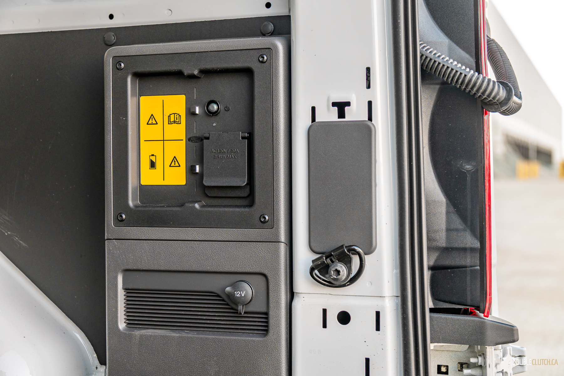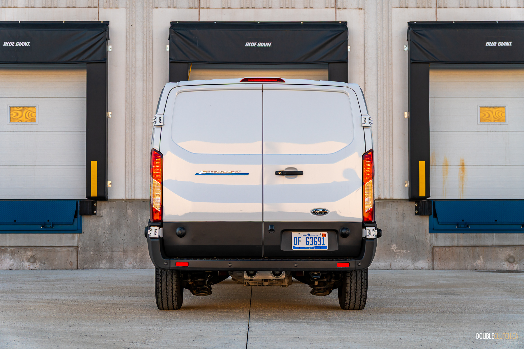 Other niceties that already worked on the gas Transit still work on the E-Transit, like the 253-degree rear doors or the cleverly placed bumpers that stop you from constantly scoring own-goals with door dings. There’s an optional ProPower outlet out back delivering 120 volts at 2.4kW, which admittedly is an option on the gasser, but this longer necessitates running the engine to use it. This can be very helpful if there’s nosy neighbours around the job site.