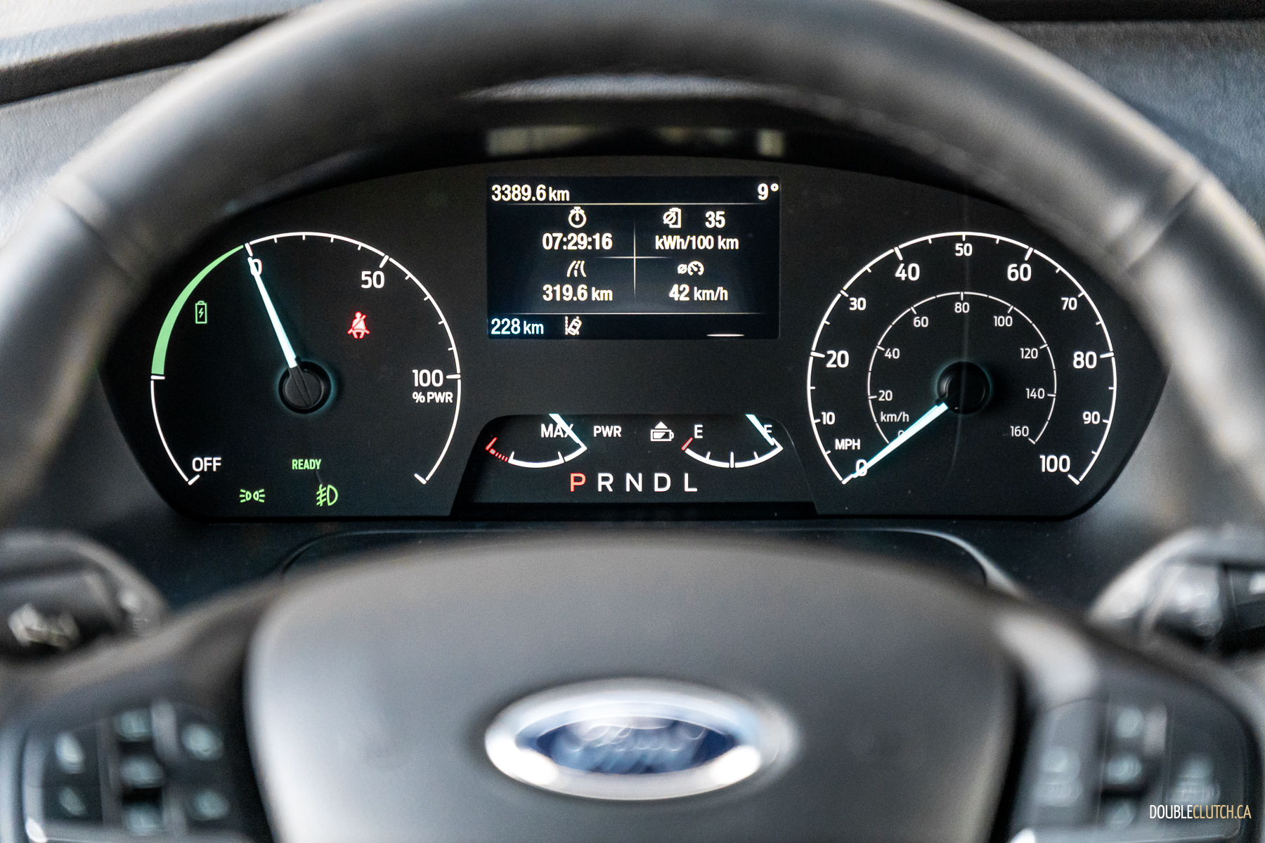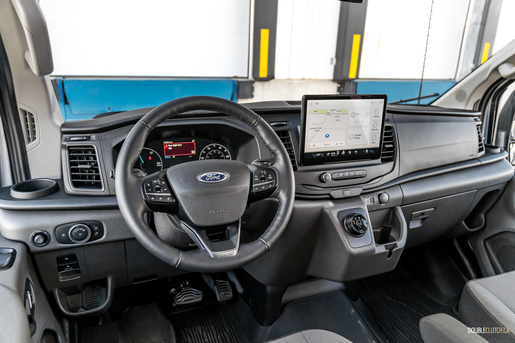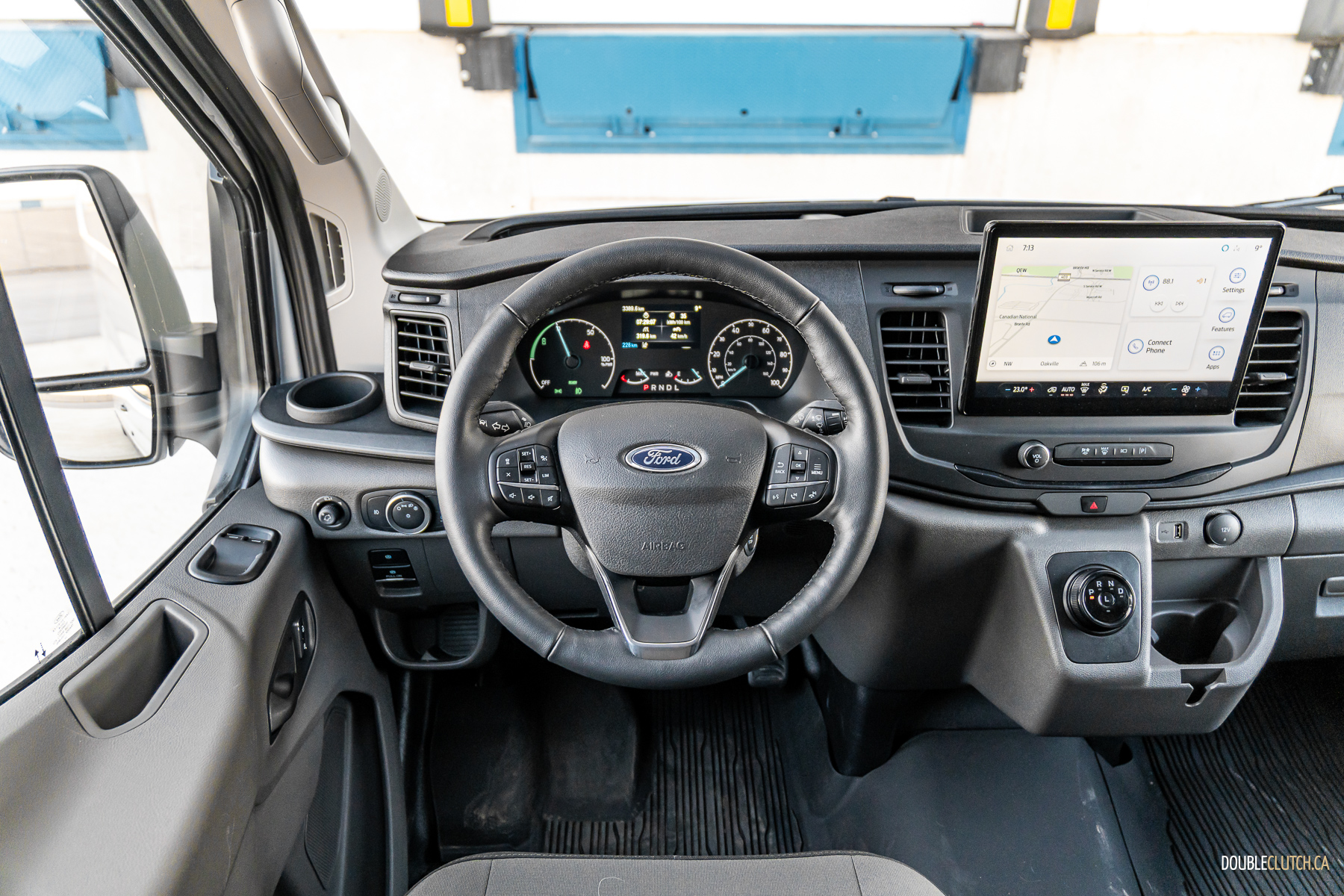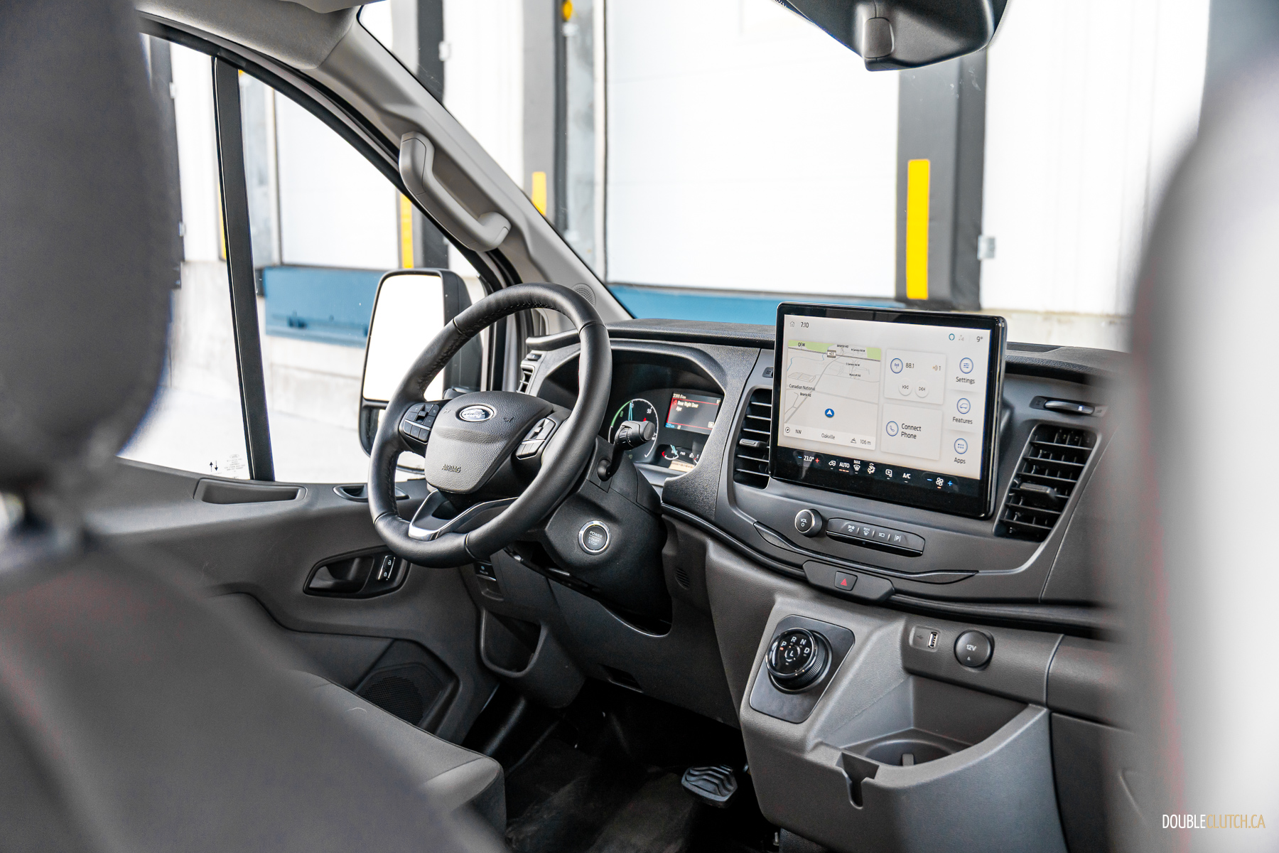 On a typical 220-volt Level 2 charger, the E-Transit can charge from fully dead to fully done in about 11 hours, and can pick up a very unscientific 40ish-to-70ish per cent in a couple of hours. This new battery pack is also capable of accepting a fast charge, going from 20 to 80 per cent in half an hour at a DC fast-charging station, if your route for the day goes long. Ambient temperatures hovered around freezing for most of my time with the E-Transit, and range didn’t suffer much for it, squeezing out 248 km in the real-world—less than 3 per cent off its ideal peak.