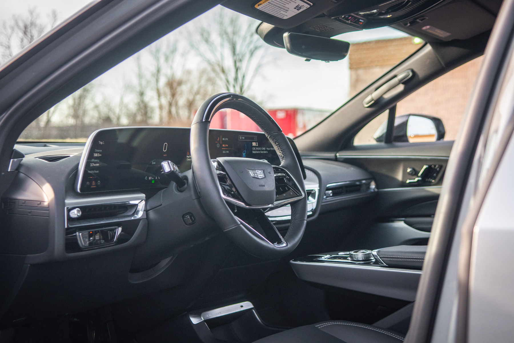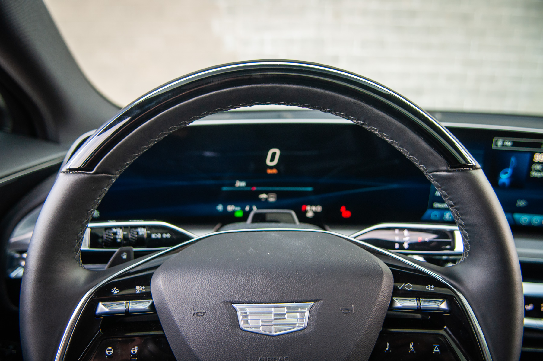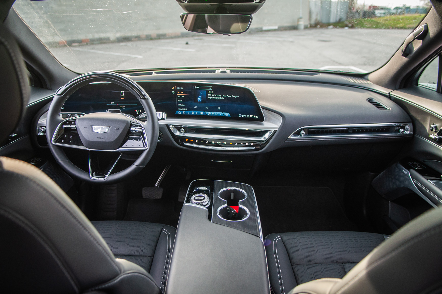 Mercifully, Cadillac hasn’t completely ignored the importance of good ergonomics. Say what you will about the haptic-feedback touch panels on the steering wheel, they work well, and I could kiss GM for still including a row of physical switchgear on the centre stack, as well as a rotary controller for the infotainment to keep unsightly smudges and fingerprints off the screen—yes, I’m that fussy. Visibility all around is excellent, there’s plenty of space regardless of where you sit, the “skateboard” nature of the definitely-not-Ultium platform results in a flat floor and plenty of cubbies and storage pockets down low. Cargo space comes in at 793 litres with the seats up; fold them flat and more than doubles to 1,722 L. One minor nitpick about the seats: I found the headrests stuck out a bit too much for my liking, so I couldn’t get totally comfortable. Your mileage may vary.