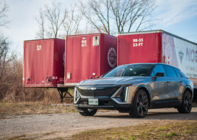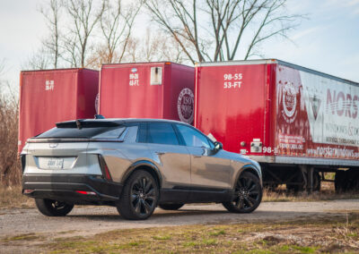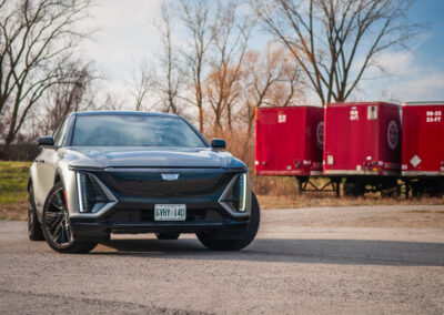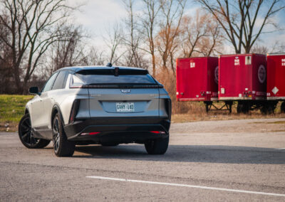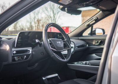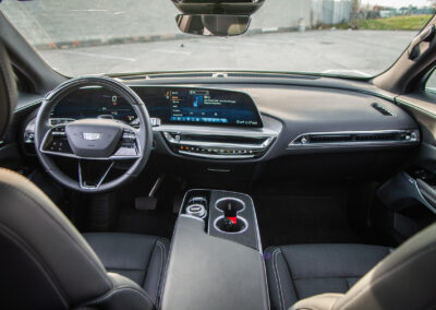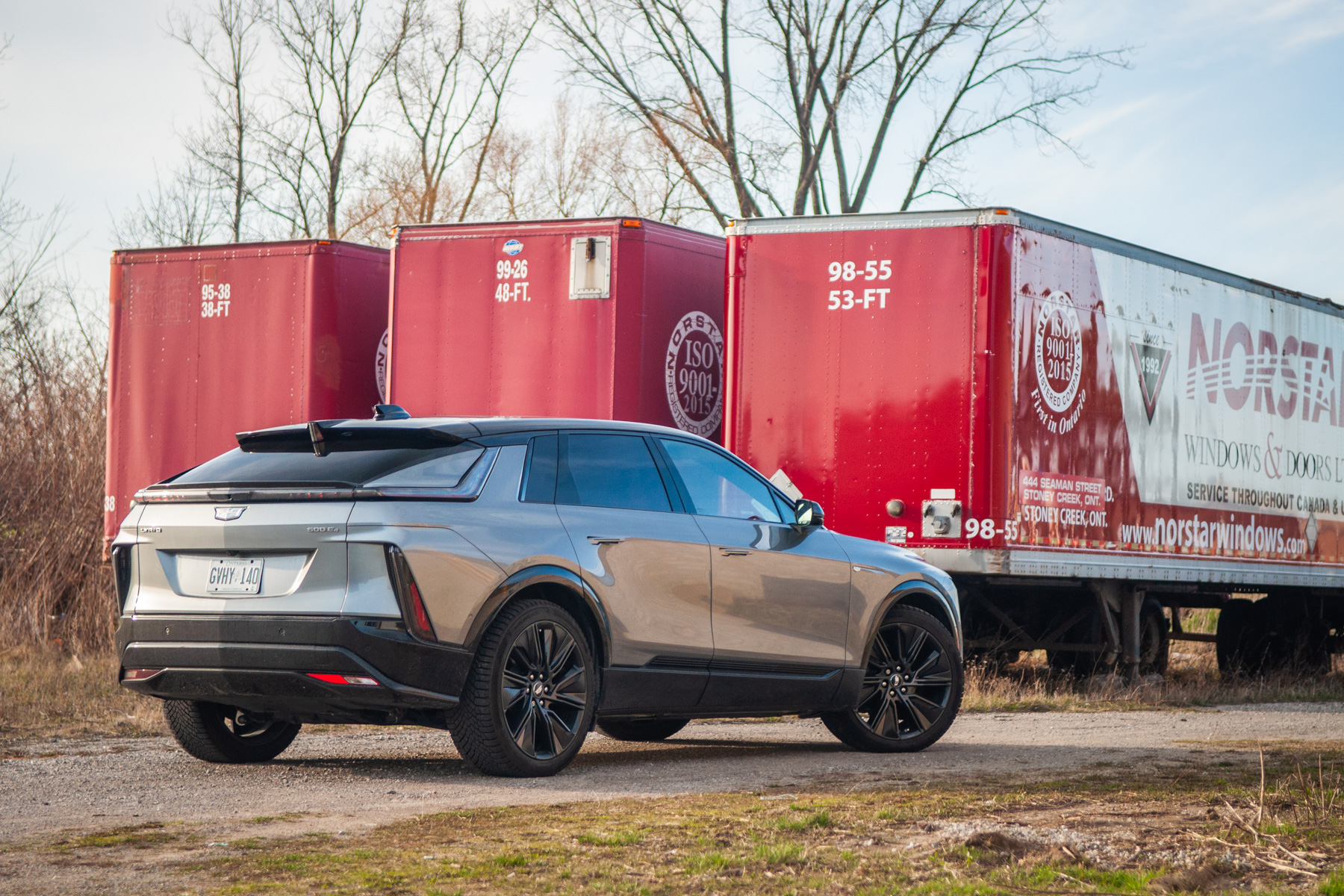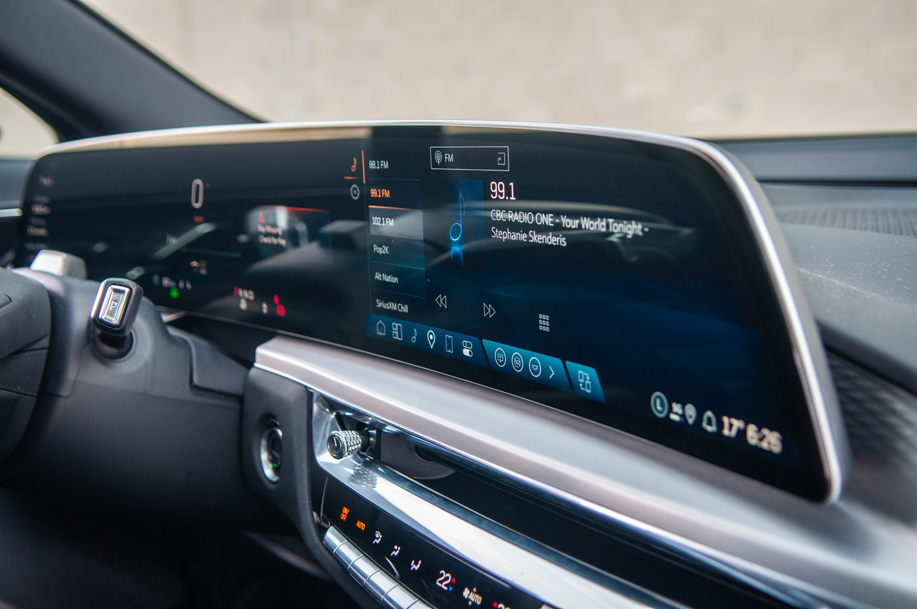 Mercifully, Cadillac hasn’t completely ignored the importance of good ergonomics. Say what you will about the haptic-feedback touch panels on the steering wheel, they work well, and I could kiss GM for still including a row of physical switchgear on the centre stack, as well as a rotary controller for the infotainment to keep unsightly smudges and fingerprints off the screen—yes, I’m that fussy. Visibility all around is excellent, there’s plenty of space regardless of where you sit, the “skateboard” nature of the definitely-not-Ultium platform results in a flat floor and plenty of cubbies and storage pockets down low. Cargo space comes in at 793 litres with the seats up; fold them flat and more than doubles to 1,722 L. One minor nitpick about the seats: I found the headrests stuck out a bit too much for my liking, so I couldn’t get totally comfortable. Your mileage may vary.