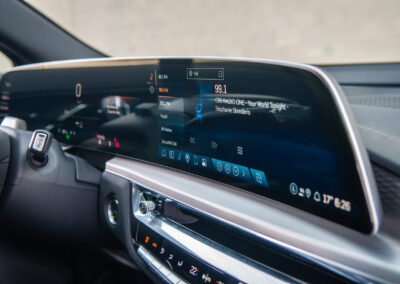 Under the (again, very pretty) sheet metal, all Lyriqs use a 102 kWh battery pack. Base models use a single, rear-mounted electric motor rated at 365 horsepower, 325 pound-feet of torque, and up to 525 kilometres of range on paper. Our fully loaded tester had an additional electric motor up front, giving it a hefty boost to 515 hp and 450 lb-ft of torque. Range takes a slight hit, coming in at 488 km on paper. We managed 385 kilometres in the real world; not bad on account of the chilly ambient temps during our week with the Lyriq. Cadillac says a full recharge on a Level 2 charger—similar to what you might have at home or the office—takes up to 10 hours. Plug into a Level 3 fast-charger and you’re looking at a 10-to-80 per cent top-up in half an hour, albeit at 190 kW. Good luck finding one that fast in the real world.