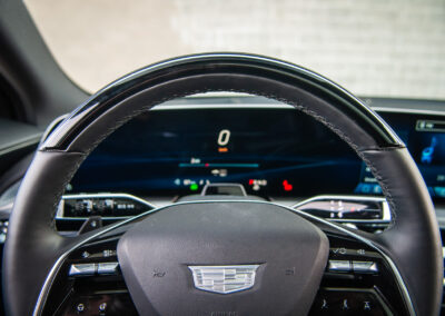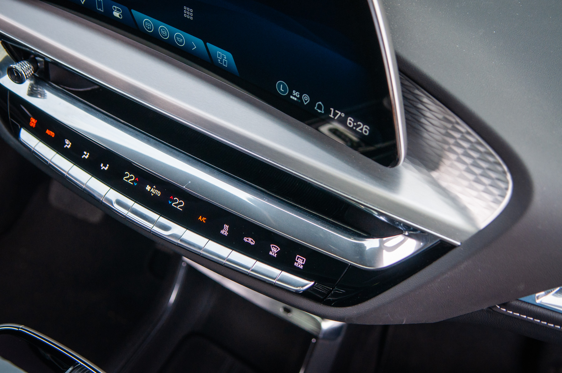 Like almost everyone else out there, a 33-inch widescreen dominates the dashboard, encompassing the instrument cluster, infotainment touchscreen, and a few other controls. But unlike almost everyone else out there, Cadillac’s execution with this arrangement is tasteful: the display follows the dash’s curves and is recessed, so it avoids looking like a tacked-on afterthought. By and large, the display uses its digital real estate well; it’s snappy and responsive to inputs, logically logically laid-out, and highly configurable. Plus, wireless Apple CarPlay and Android Auto are on board—for the time being, at least—along with GM’s full suite of active safety and driver assists including Super Cruise. It remains one of the best, if not the best semi-autonomous driving systems out there.