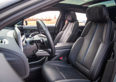 Yes, the dual-motor, all-wheel-drive Lyriq is fast. It doesn’t quite do the insta-torque thing from a dig, but it’ll keep you pinned to the seats in a stoplight drag race, and unlike the Mustang Mach-E GT, it doesn’t run out of breath on the highway. Even then, that’s not the Lyriq’s MO. Sure, it corners well, staying surprisingly flat and delivering heaps of grip when you carry a bit of extra speed into your favourite on-ramp. But once you’ve cleared that on-ramp, the Lyriq is happiest just chilling. Despite the dubs and rubber-band tires, it’s extremely cushy, soaking up all but the harshest of bumps and potholes. It’s also well-isolated from wind and road noise; factor in the lack of an engine, and the Lyriq is nothing if not serene.
