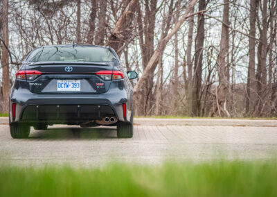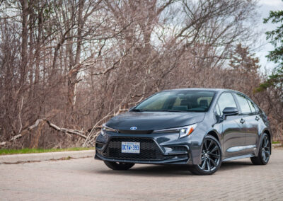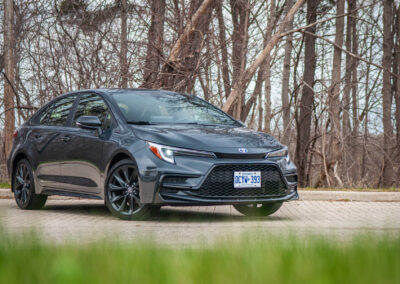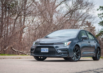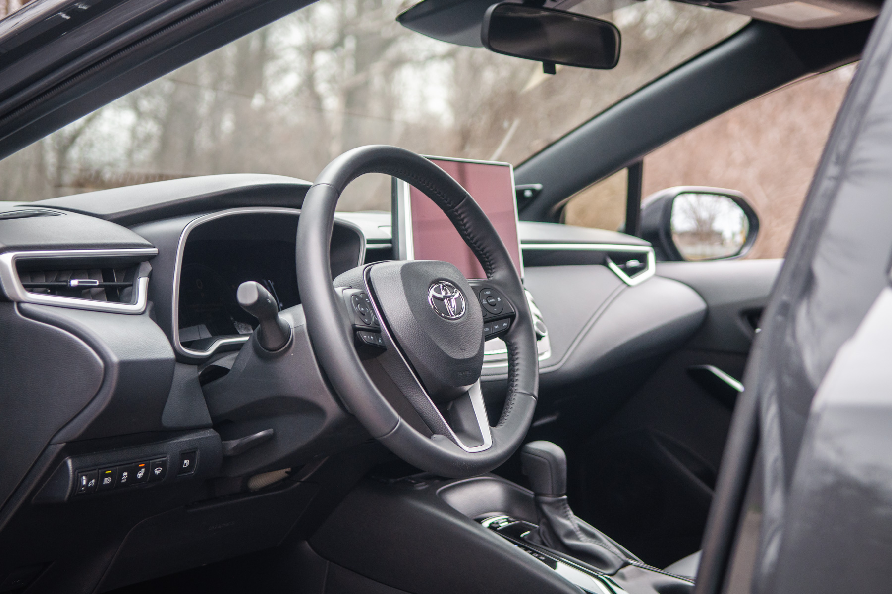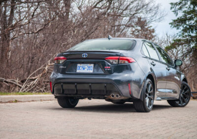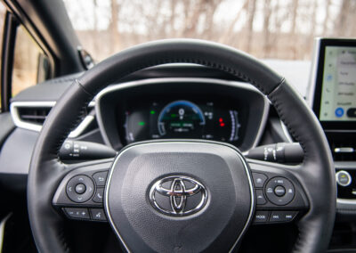 Ah, but the fuel economy. Depending on the trim level, Toyota says the Corolla hybrid can be as efficient as 4.4 L/100 kilometres in the city, 5.1 highway, and 4.7 L/100 km combined for the base, front-wheel-drive LE and its 16-inch wheels and squishier, comfier, and quieter low-rolling-resistance tires. This XSE tester is the thirstiest setup thanks to its upsized wheels and all-wheel-drive, coming in at 5.0/5.7/5.3 L/100 kilometres city/highway/combined. After covering more than 1,800 km, our tester’s trip computer settled at 5.8 L/100 km. In the dead of winter. With the heat blasting, and heated seats and steering wheel almost always on. Driving in headwinds most of the way back to Toronto. And using the remote starter a lot. Not bad.