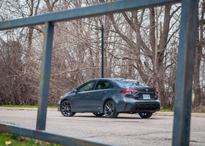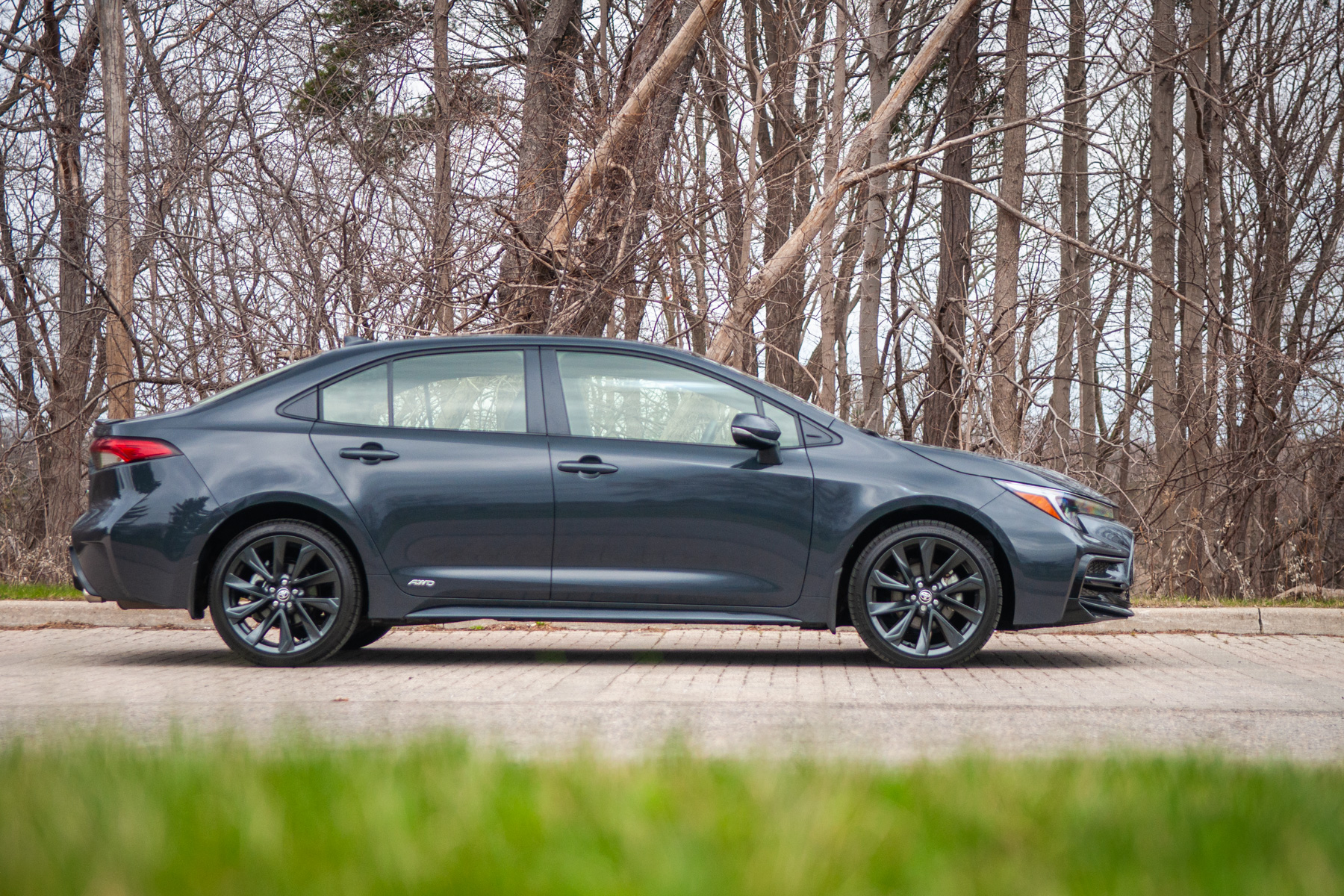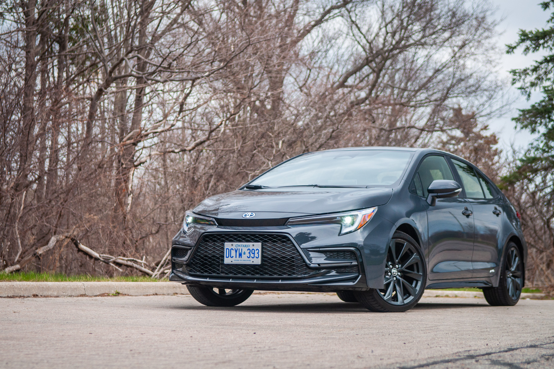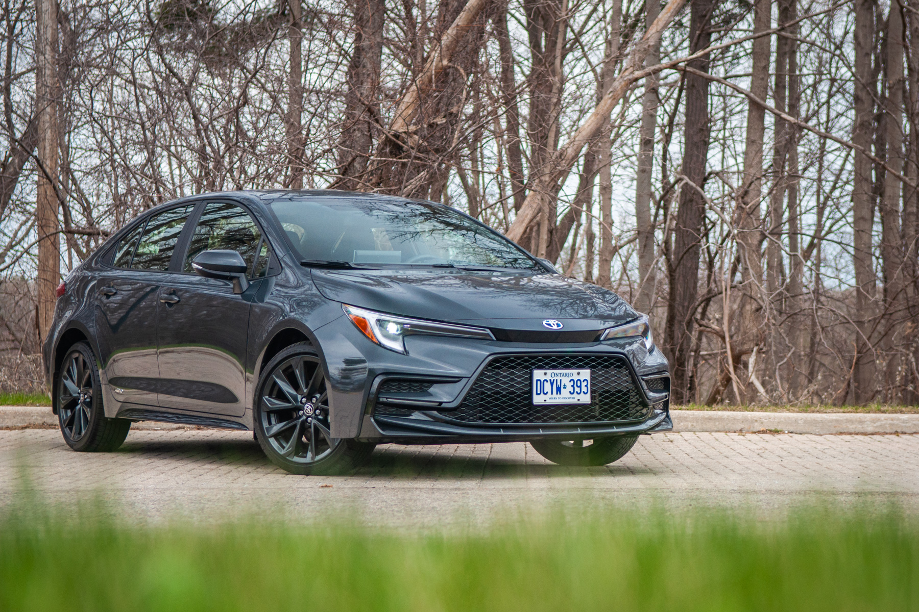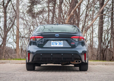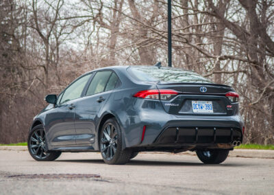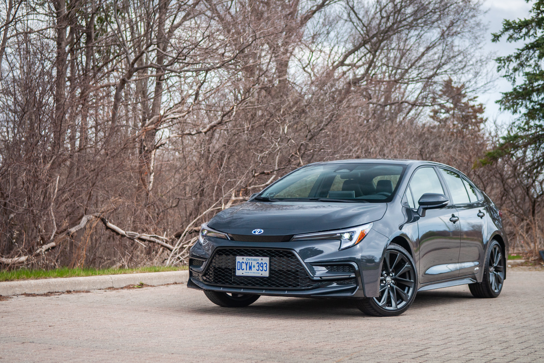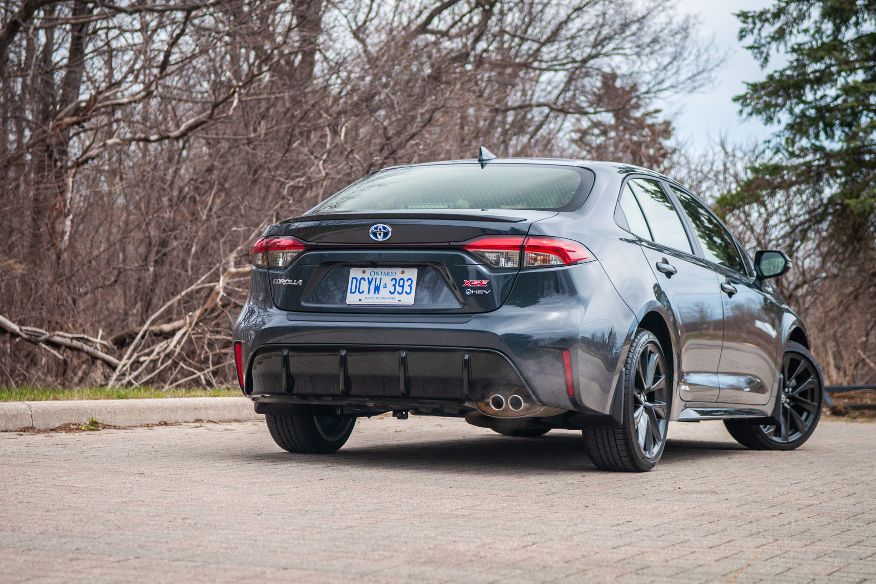 Quite the opposite. The Corolla blends in wherever you go, especially finished in our tester’s Underground paint, a darker take on the nonmetallic primer grey trend plaguing “colour” palettes. But blending in is perfectly OK for a commuter car like the Corolla; if the redesigned Prius is a bit much for your liking, the Corolla might be a better fit while still giving you the Toyota hybrid goodness. Our top-spec XSE tester sets itself apart from lesser Corolla trims with more aggressive-looking front and rear fascias, blacked-out 18-inch wheels and matching accents, and a subtle lip spoiler. It won’t turn heads, but it’s handsome enough and nowhere near as needlessly polarizing as a Hyundai Elantra or Kia K4.