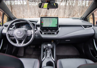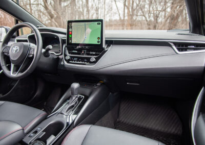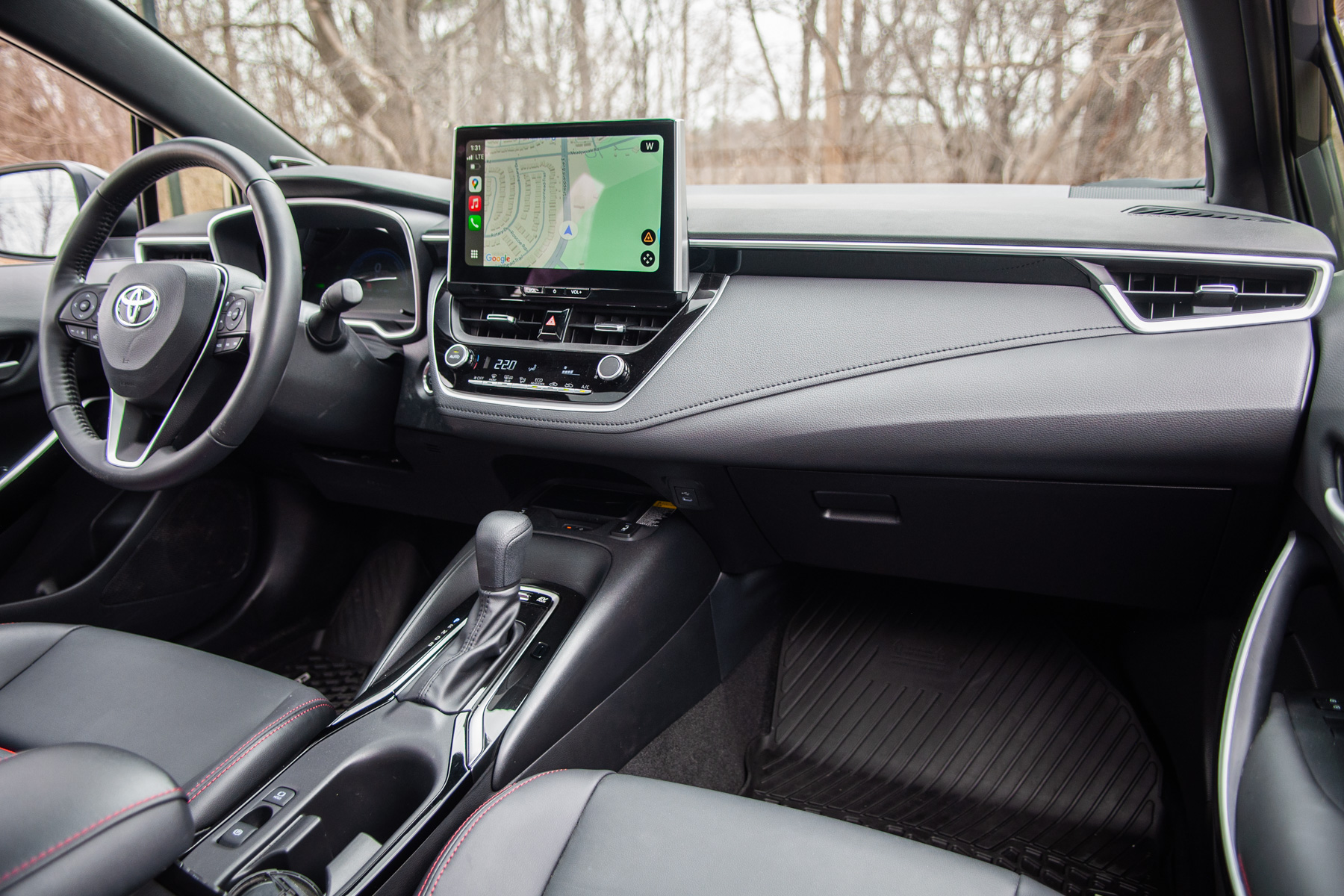 The Corolla is just as visually ho-hum inside. Having seen what Toyota’s done with newer models like the Crown, Grand Highlander, and even the updated Camry … let’s just say, I certainly can’t wait to see what’s in store for the next-generation Corolla. It just looks and feels a little too drab inside. The dashboard looks chunky and takes up a lot of visual mass. The only interior colour option is black; this XSE tester has some red stitching to add some colour, but it’s mostly a depressing pit of black. Rivals like the Mazda3 and Volkswagen Jetta offer much more of a baller-on-a-budget vibe, if you’re into that.